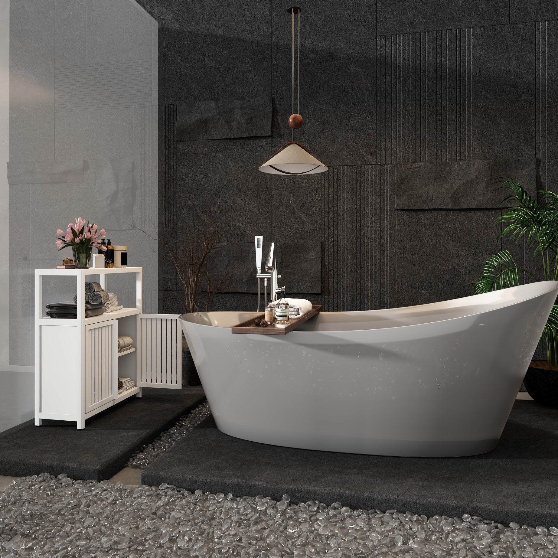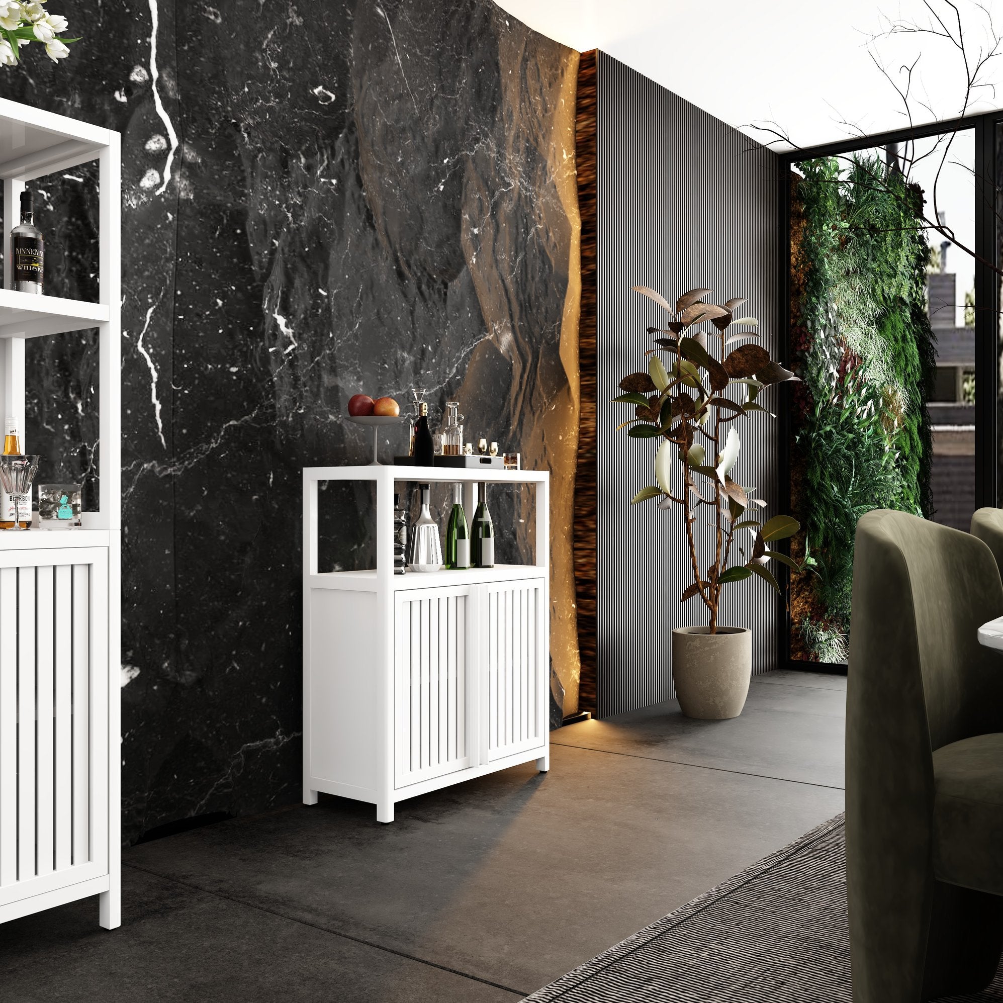 Bring organized, eco-friendly storage to any room with this large-capacity bamboo cabinet. Its clean white finish and louvered double-door design blend classic style with practical ventilation, making it ideal for bathrooms, kitchens, living rooms, porches, or entryways. Built from durable renewable bamboo with a moisture-resistant finish, this freestanding cabinet keeps linens, toiletries, pantry items, and everyday essentials neatly tucked away while resisting cracking and mold.