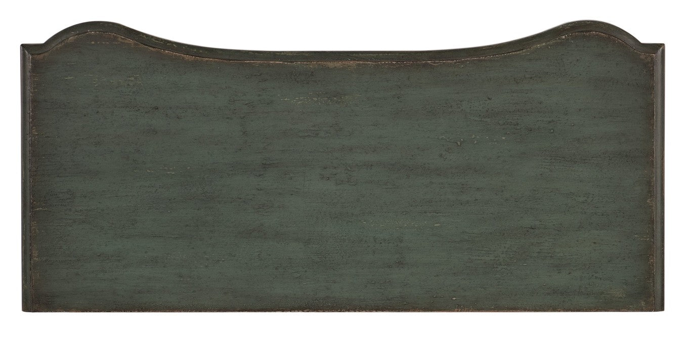- Hardware & Detail: Custom decorative pulls with a carved leaf motif in antique bronze; scalloped legs add a traditional/formal silhouette.
