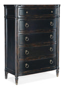 A classic piece with Southern charm, this five-drawer chest blends refined craftsmanship and practical storage for a timeless addition to bedroom or living spaces. Rich Maraschino Cherry veneers and a solid-wood edge top create warm, cathedral-grain character, while thoughtful interior details—like a felt-lined top drawer and cedar-lined bottom drawer—protect delicate items and clothing. Antique-pewter hardware and self-closing drawer guides complete the look with smooth operation and vintage-inspired appeal.