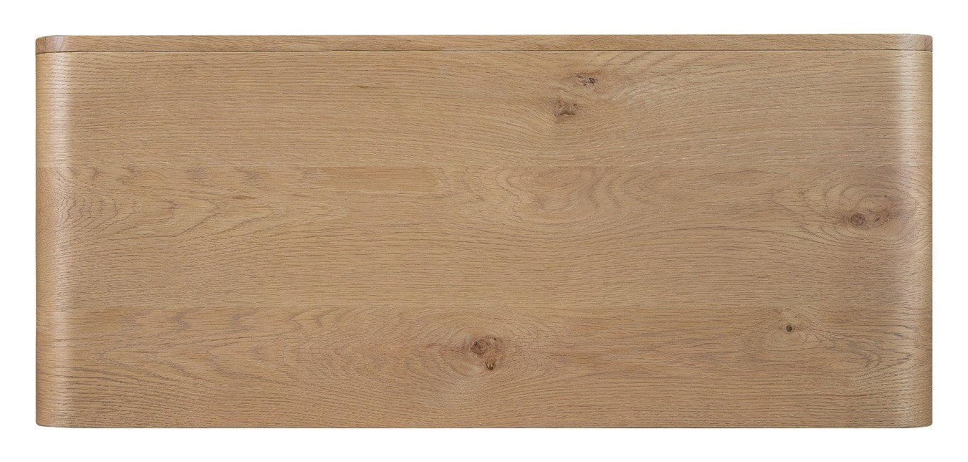 Add refined storage and timeless charm to any room with this elegant accent chest. Crafted from oak solids and veneers with a warm medium natural oak finish, the piece pairs classic craftsmanship with modern details—faceted "window pane" door fronts, rounded top edges, and a versatile interior shelf—making it a perfect fit for living rooms, bedrooms, hallways, or entryways.