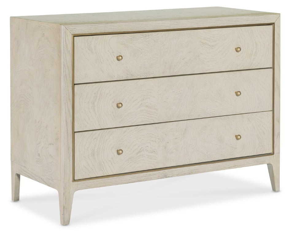 Bring classic romance and modern refinement to your space with this elegant chest, designed to balance graceful form and everyday function. Crafted with ash burl veneers in a soft light greige, the Wanderlust Chest features subtle gold accents and tapered legs that lend an airy, transitional look perfect for bedrooms, entryways, or living areas.