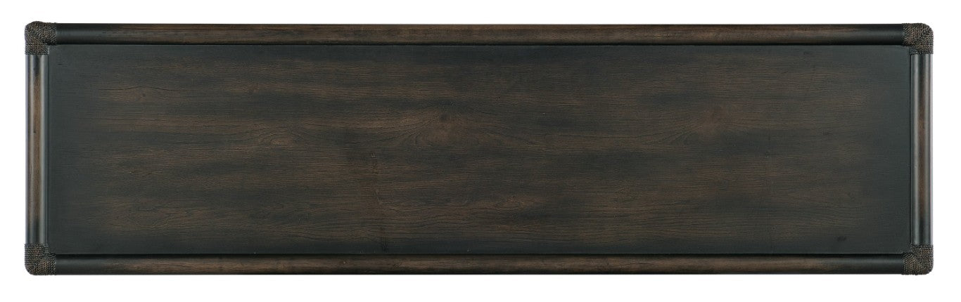 - Materials: Oak and maple veneers with rope accents and textured, pewter-colored metal hardware.