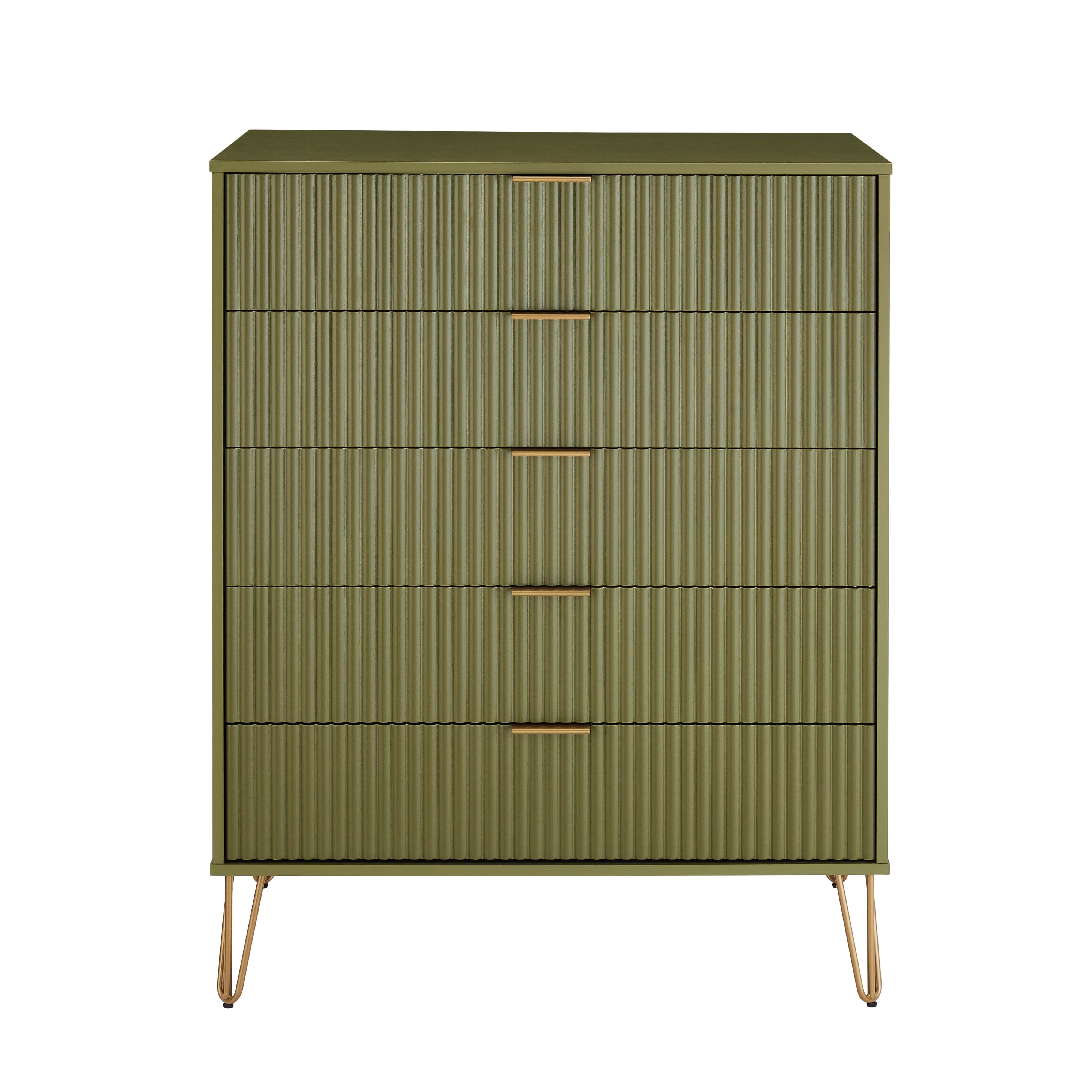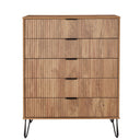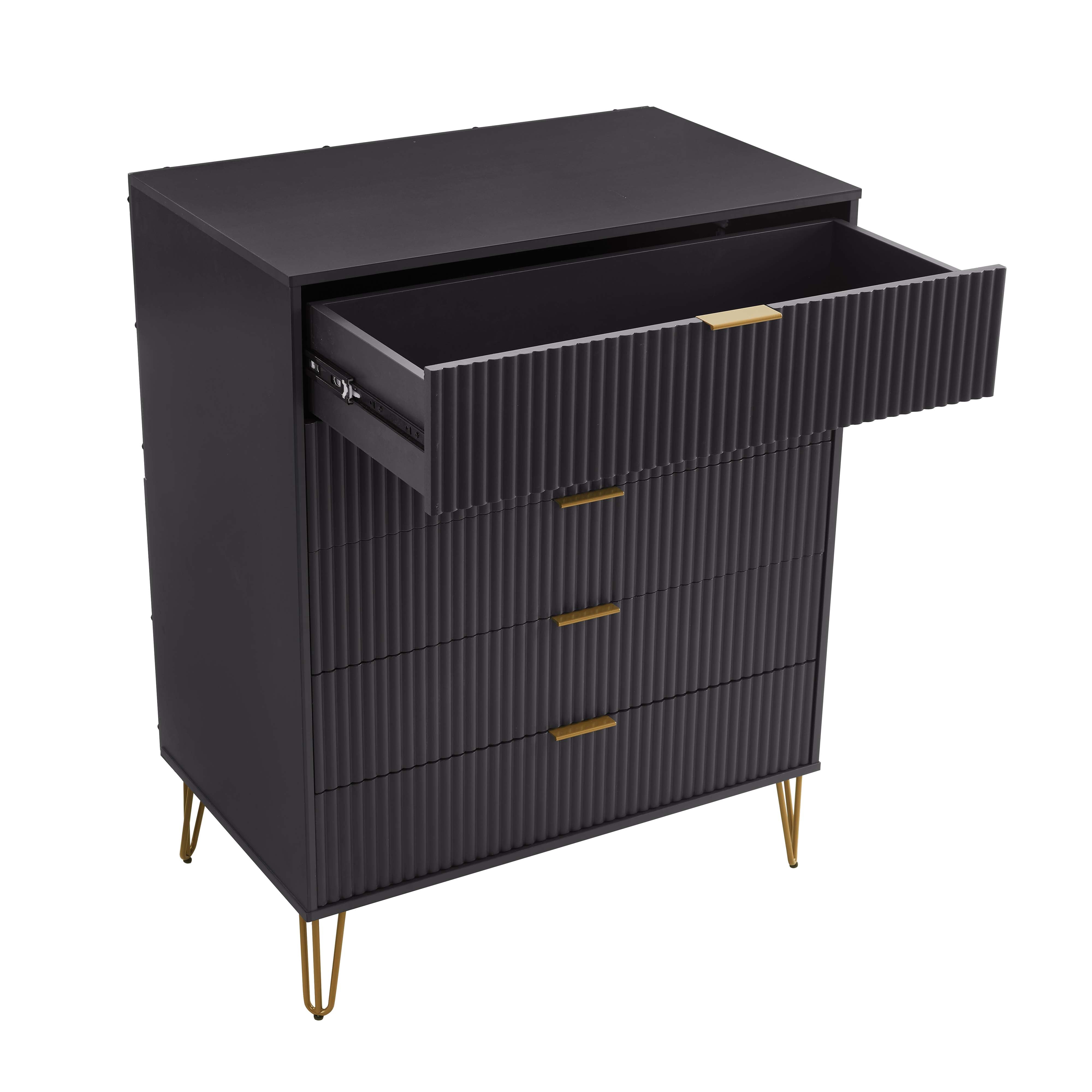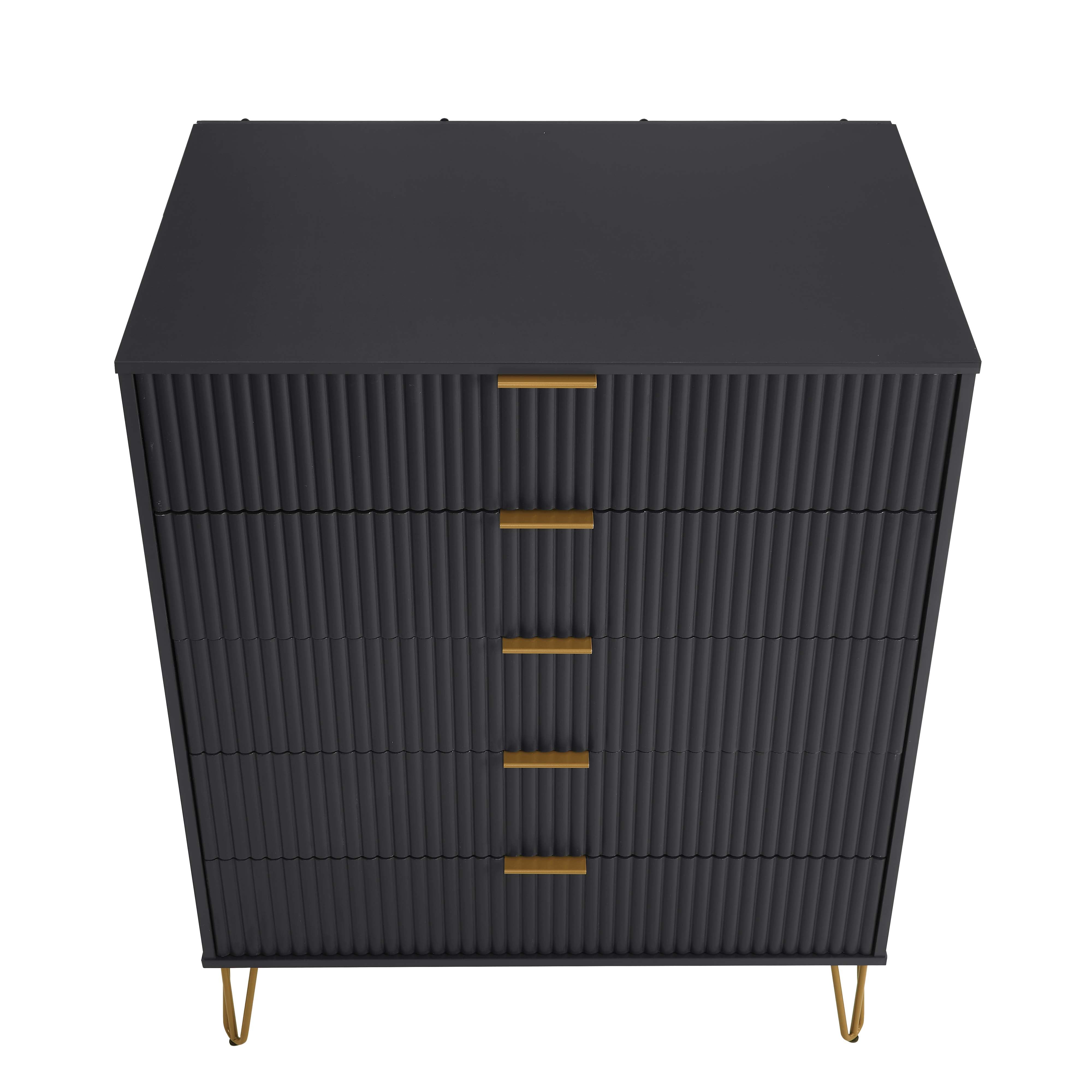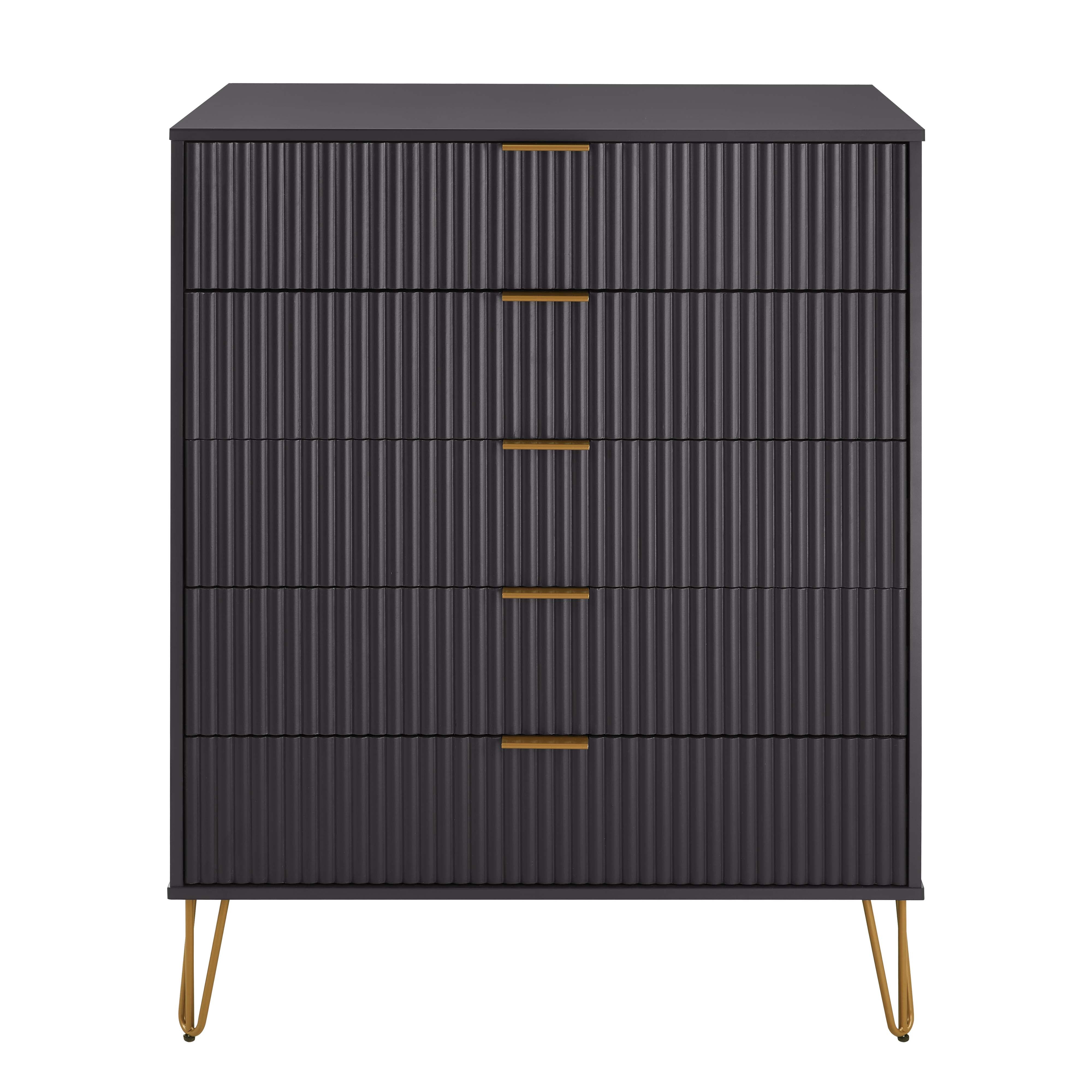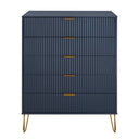 The Manhattan Comfort DUMBO Collection brings tasteful modern glam to your home! With its unique vertical ribbed drawer front, full extension and soft close , and stylish splayed metal legs, the collection is not only a true beauty but also made with quality! Stunning variety of s with sleek metal horizontal handles. DUMBO is what you have been looking for all this time! Make your house a home with the DUMBO Collection.- Modern-Contemporary with a taste of Glam - Tall Dresser for Bedroom and Living Room Use.