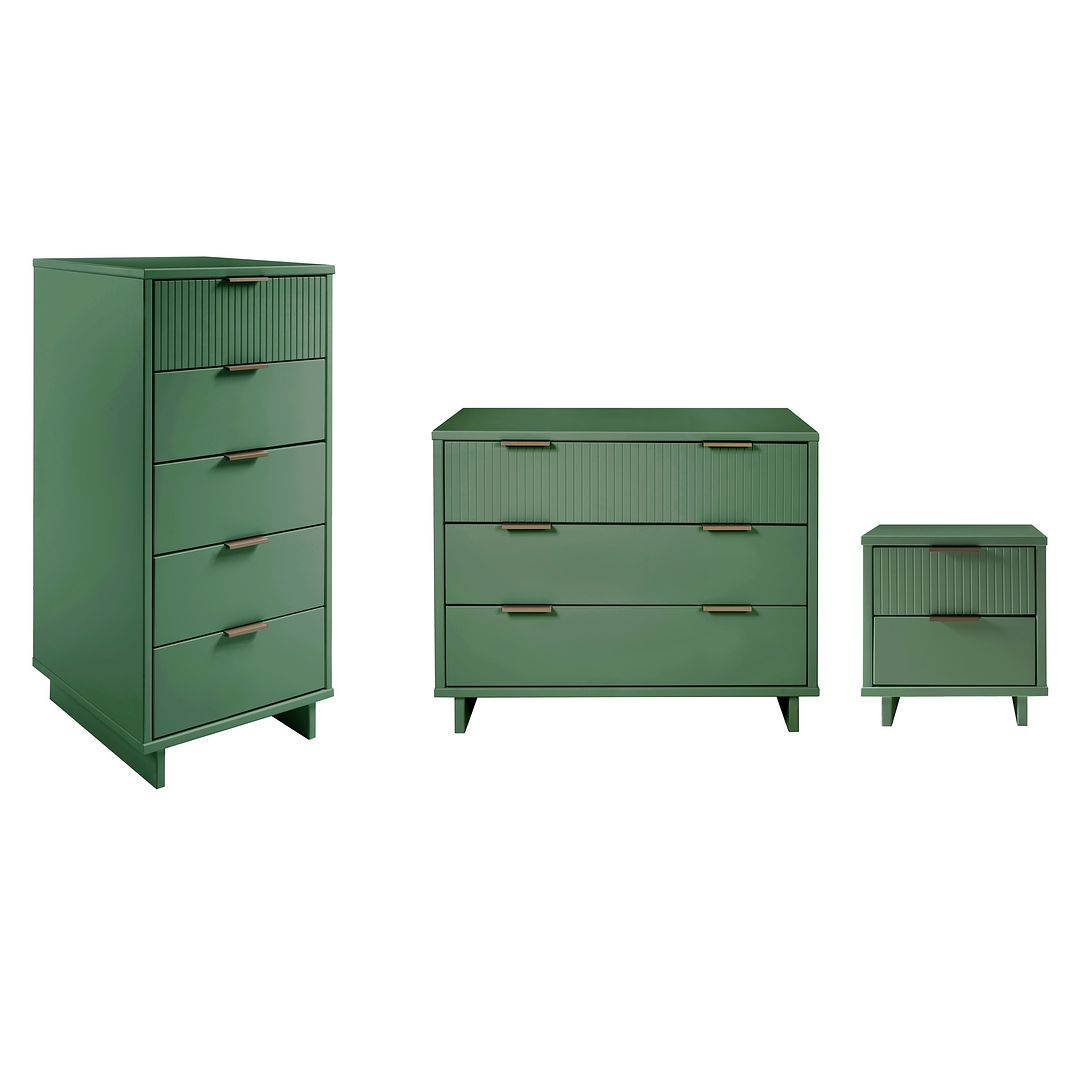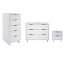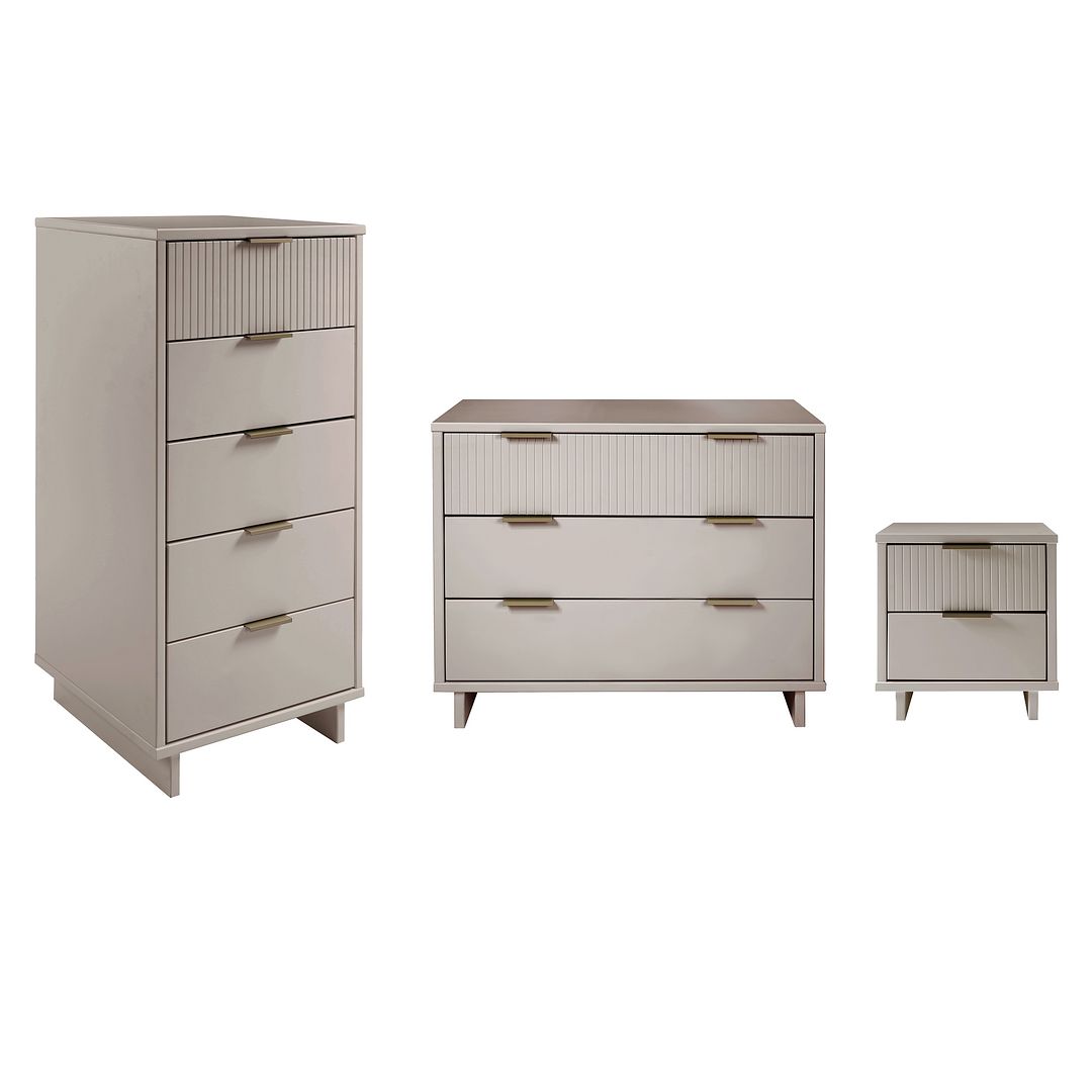- Modern-Contemporary with a taste of Glam Bedroom Dresser Set. Includes 1 Tall Narrow Chest, 1 Standard Dresser, and 1 Nightstand.