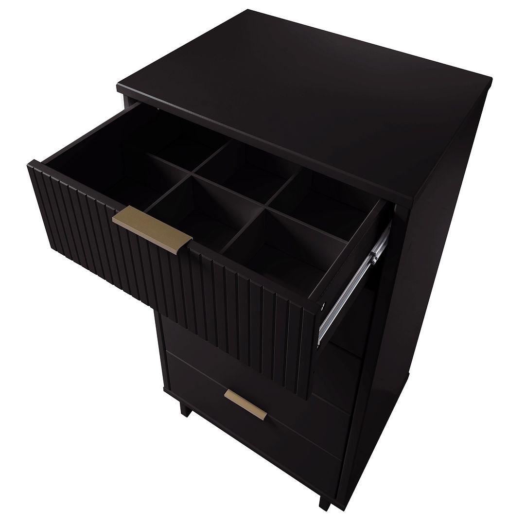 - Includes Full Extension Drawers with Top Drawer Designed in Vertical Textured Ribbed Lines Made from Solid Wood.