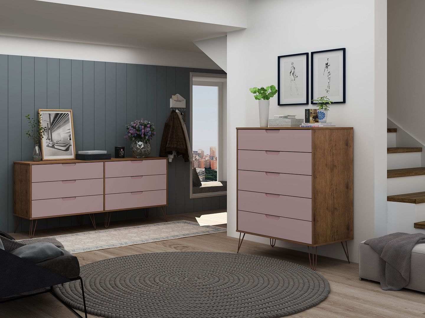 - Mid-Century Modern Tall and Wide Dresser for Bedroom Use. Set of 2.