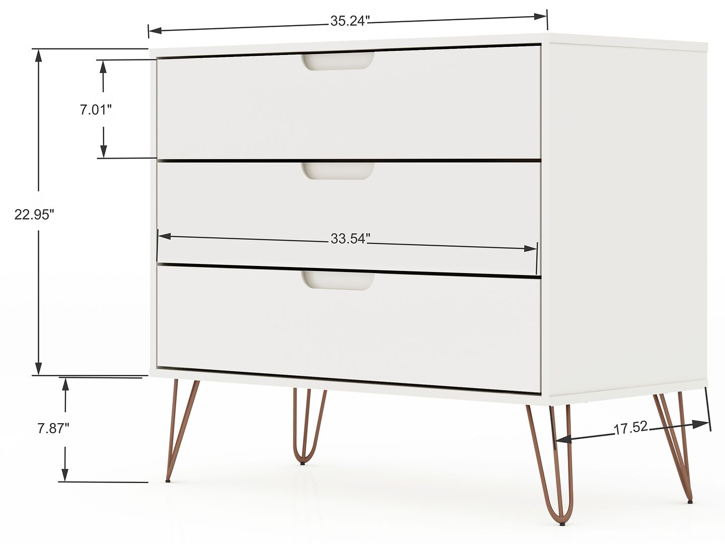 - Upon Assembly, Dresser Measures: 35.24 in. Length, 30.15 in. Height, 17.52 in. Depth.