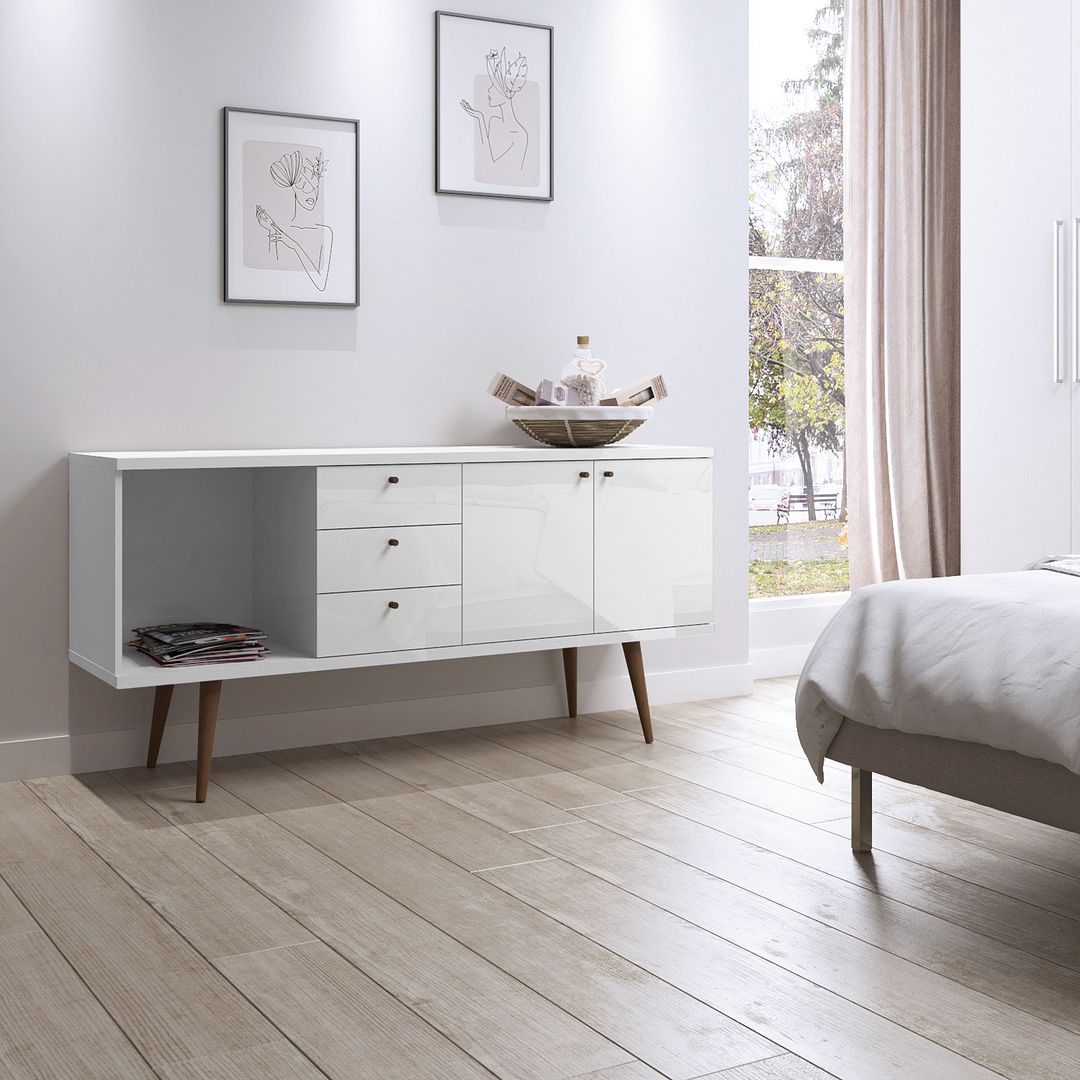 Description for S-1010451 Manhattan Comfort Utopia Wide Dresser in White Gloss and Maple Cream