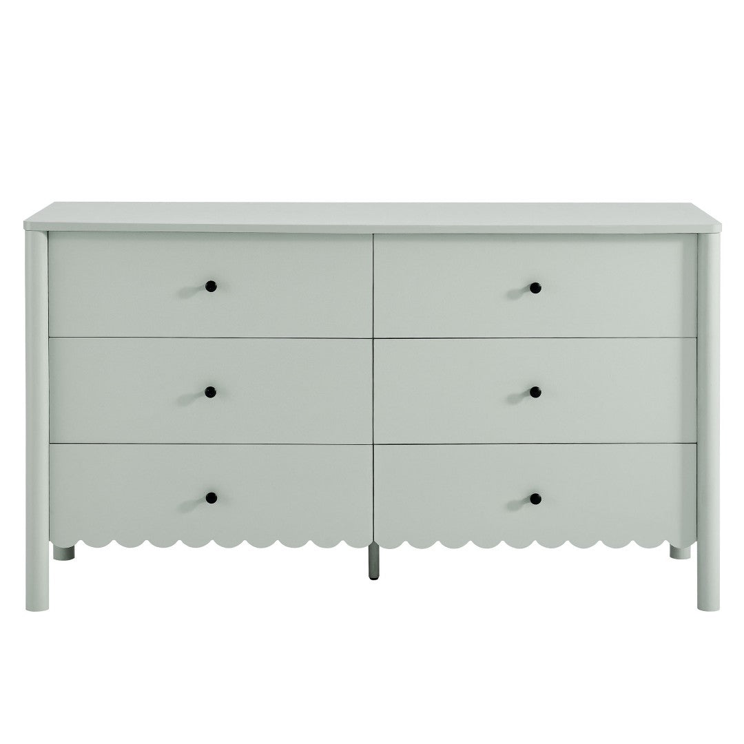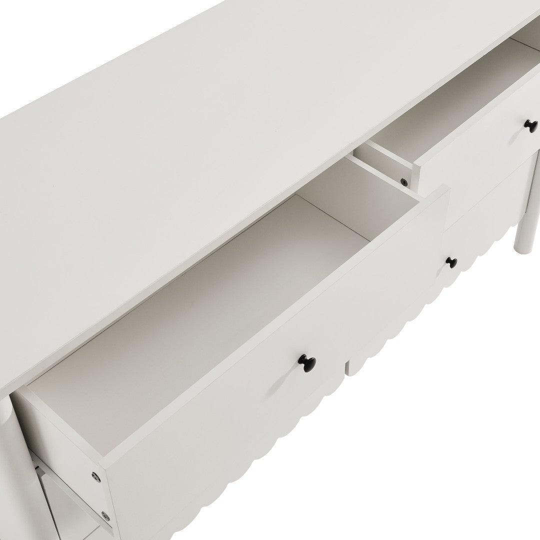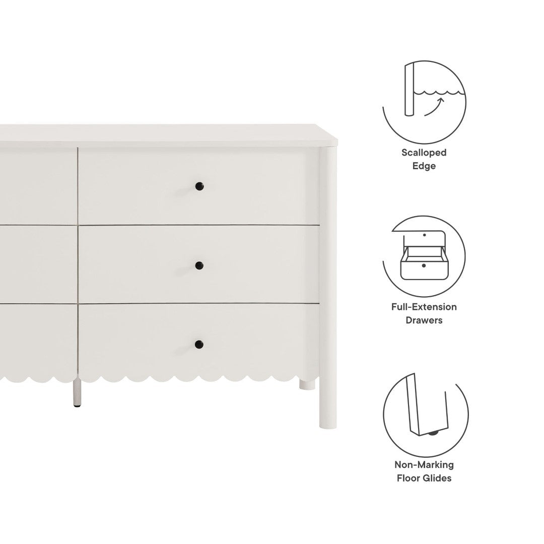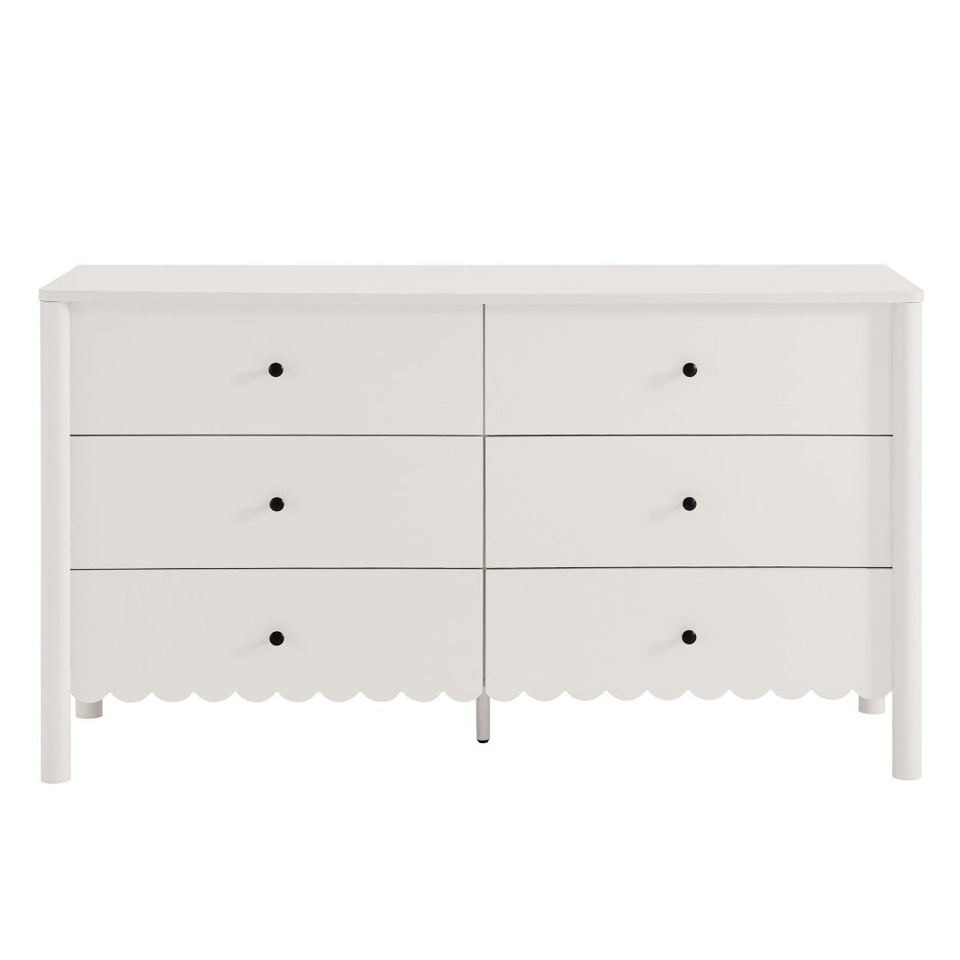Bring a sculptural, modern touch to your bedroom, living room, or entryway with a dresser that pairs soft, scalloped lines and smart storage. The Emmeline 6-drawer design elevates everyday organization with full‑glide drawers, a durable laminated finish, and subtle details—like round knobs and non‑marking glides—that protect floors while refining the overall look.