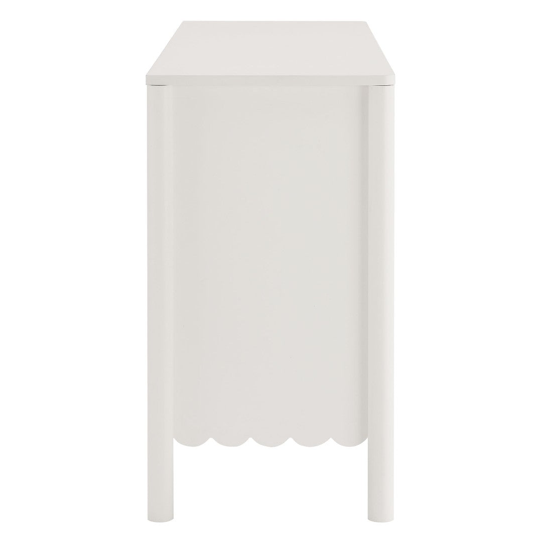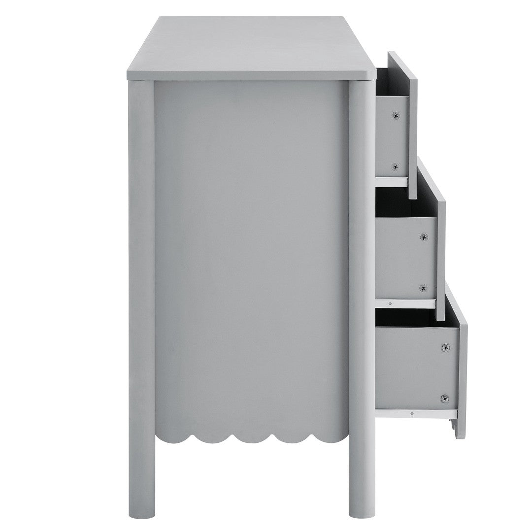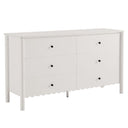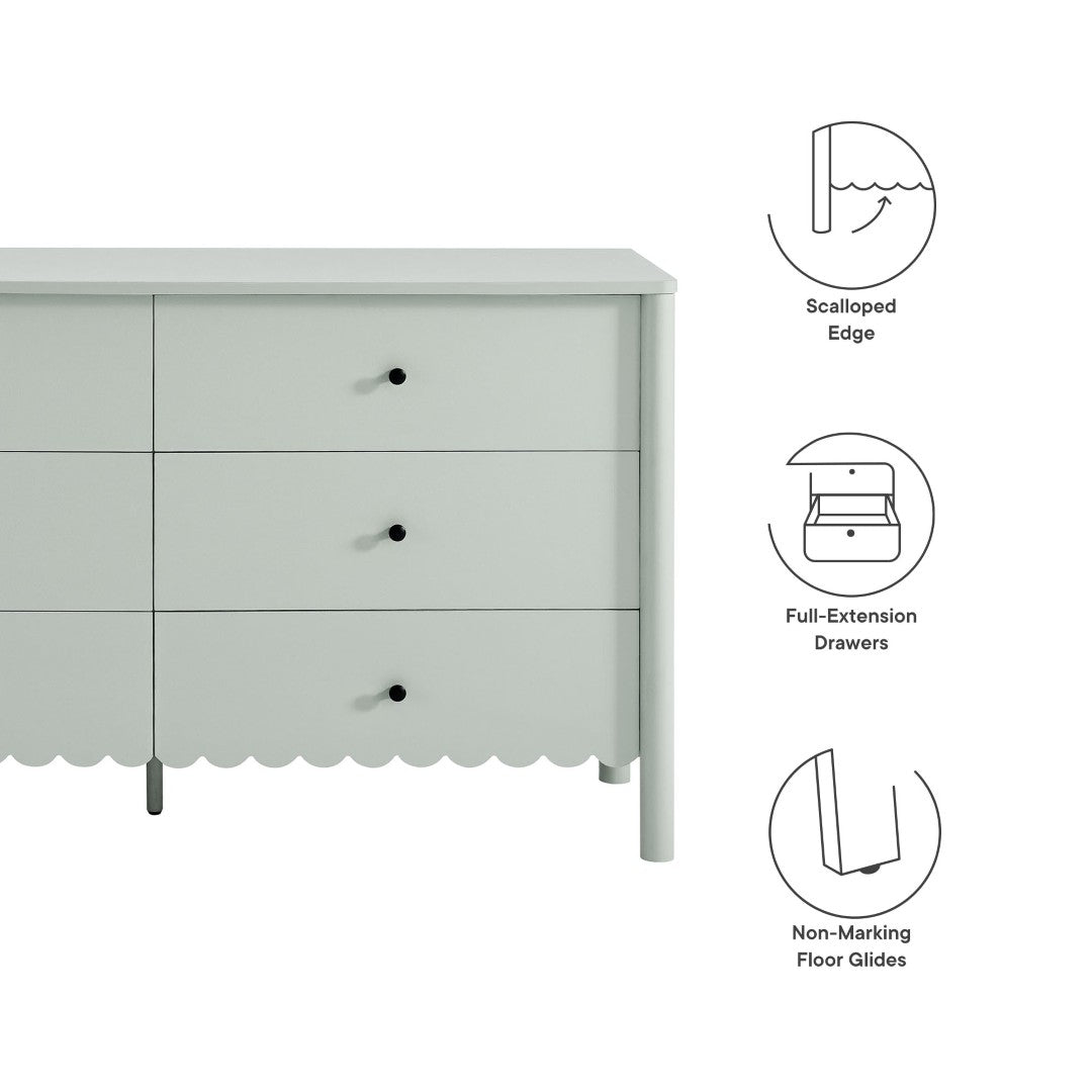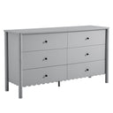 Bring a sculptural, modern touch to your bedroom, living room, or entryway with a dresser that pairs soft, scalloped lines and smart storage. The Emmeline 6-drawer design elevates everyday organization with full‑glide drawers, a durable laminated finish, and subtle details—like round knobs and non‑marking glides—that protect floors while refining the overall look.