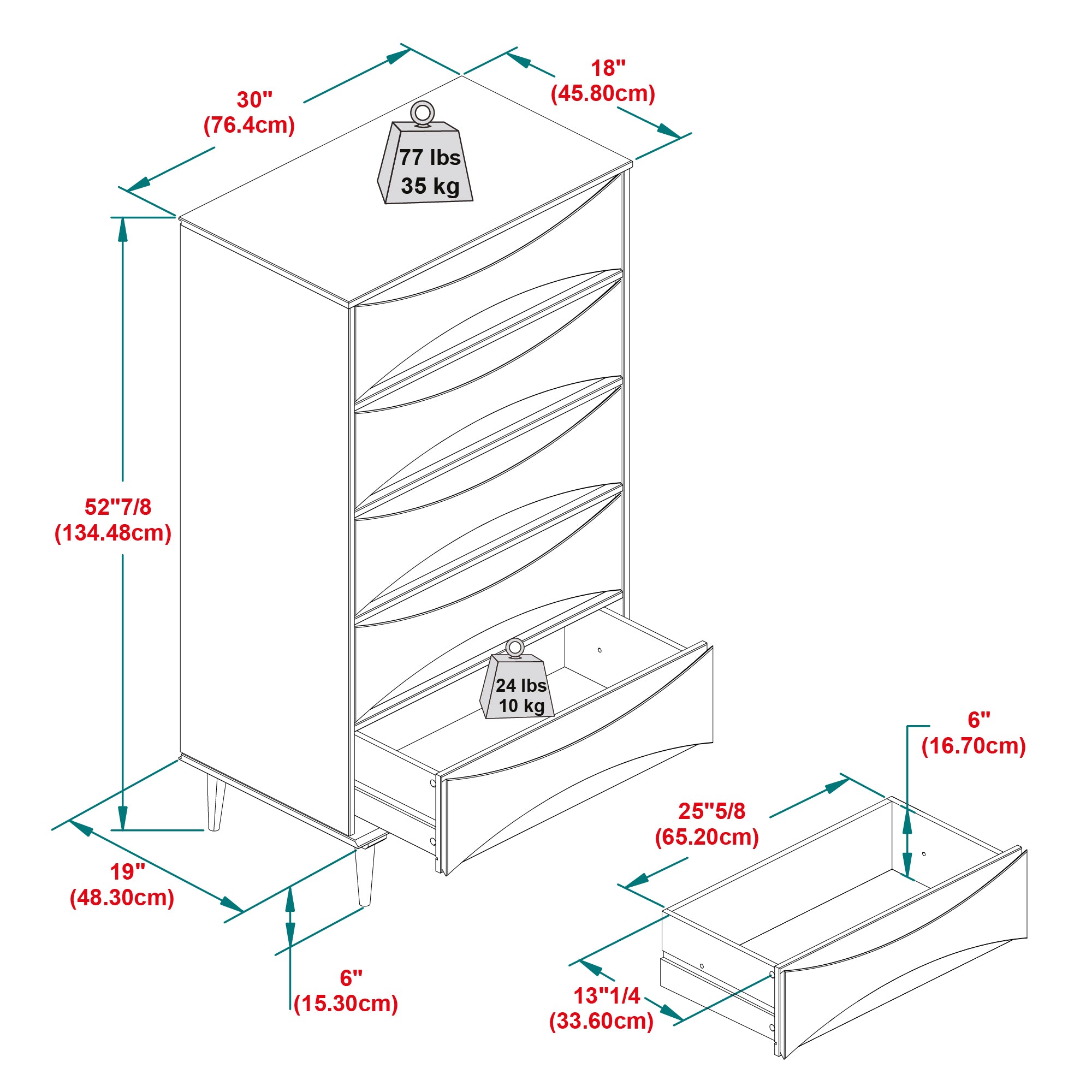 - Drawer Weight Capacity: 24