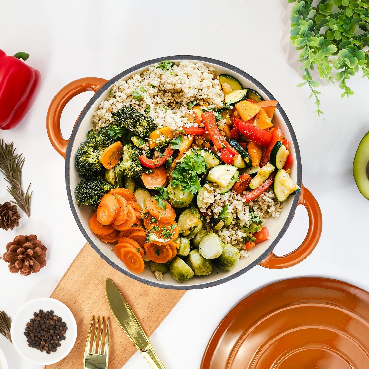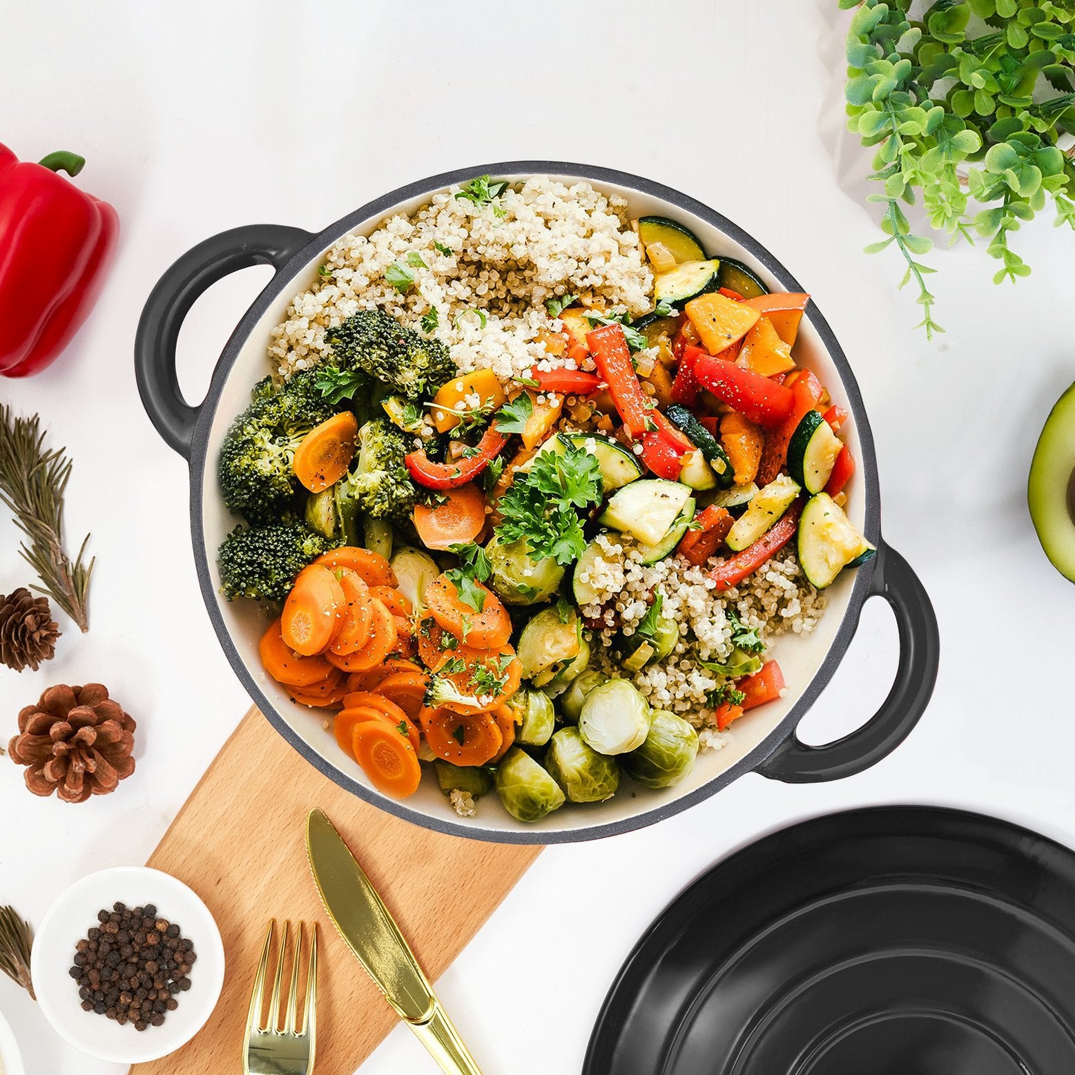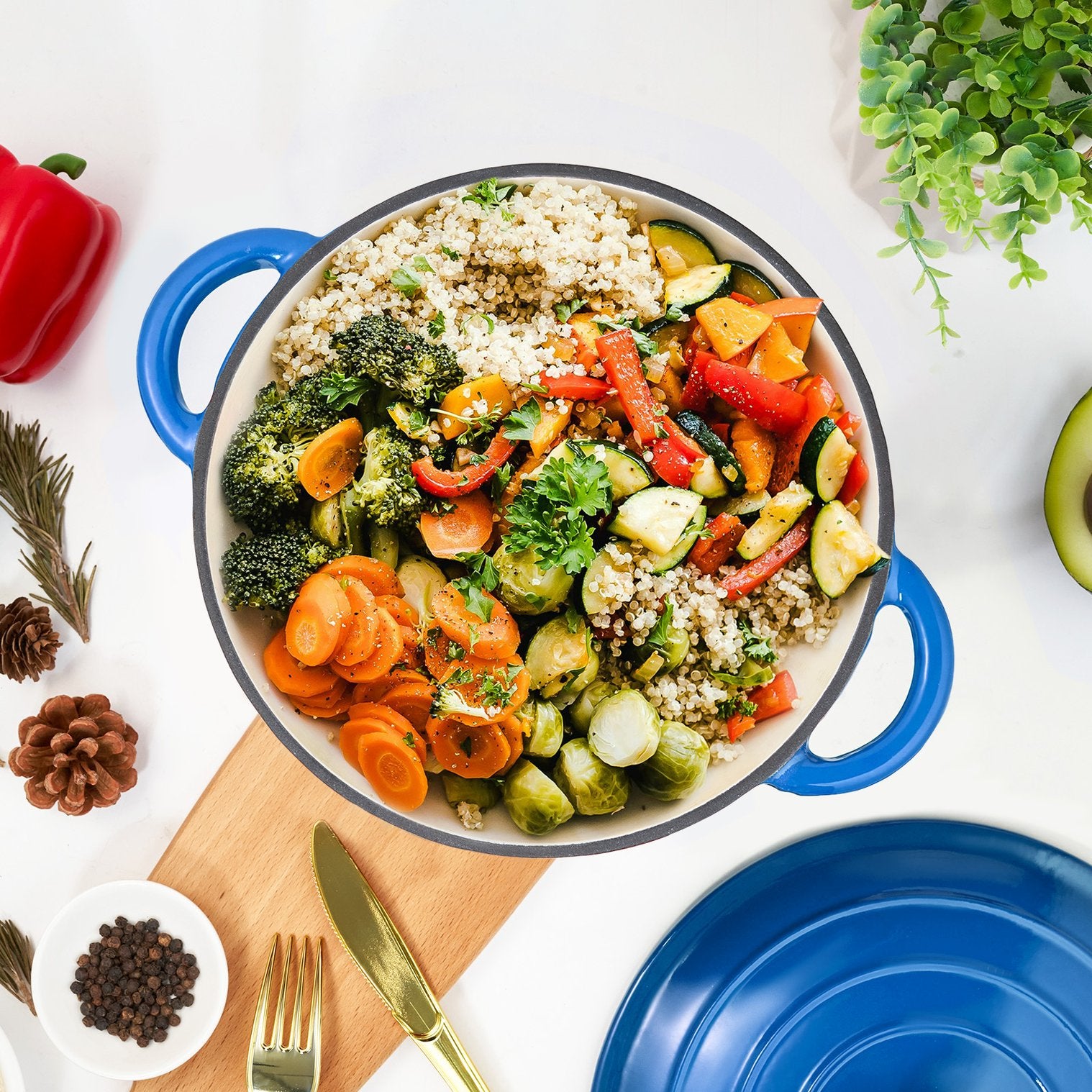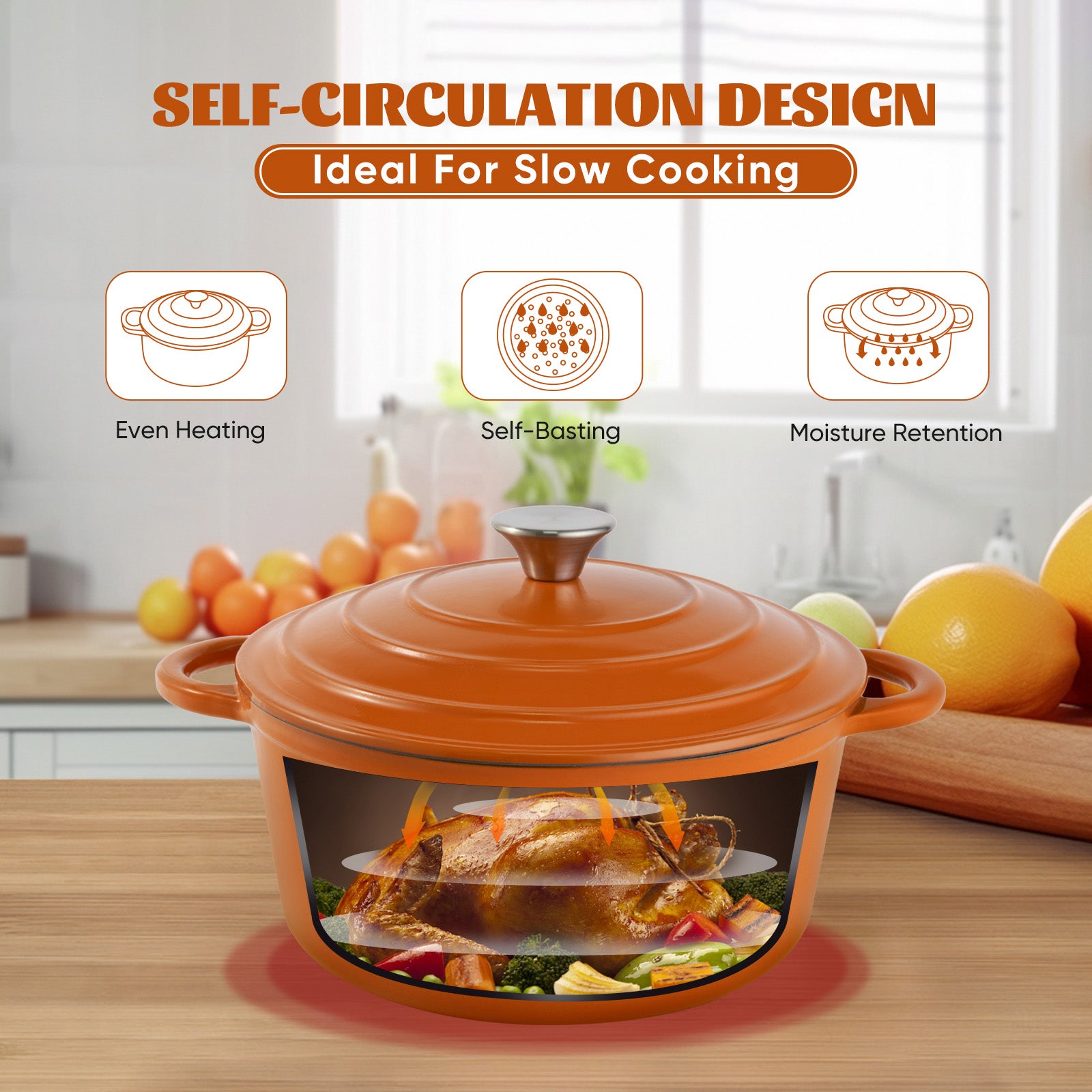 - WIDE USAGE SCENARIO:This enameled cast iron dutch oven is suitable for a variety of cooking scenarios including gas, electric, ceramic and induction stoves.The natural insulation of the cast iron pan combined with the enamel surface meet your multiple cooking styles and needs.