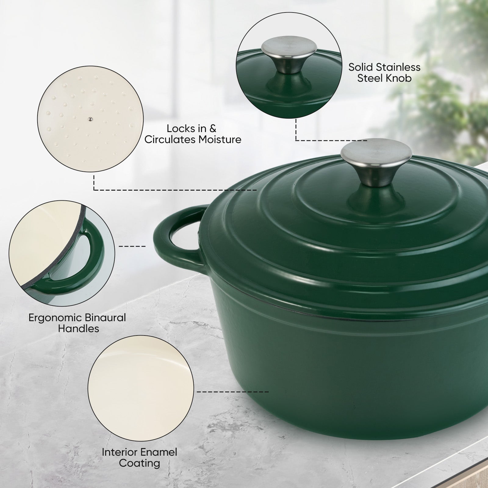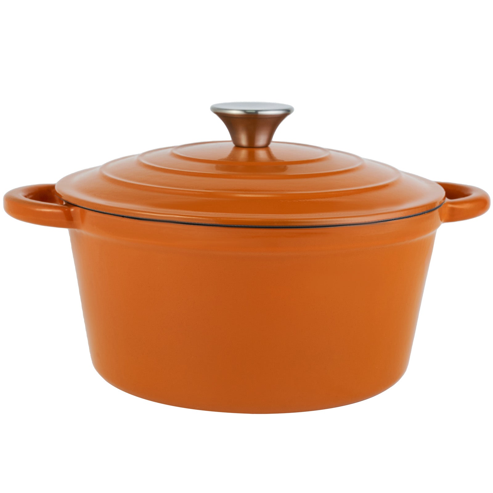 Enjoy home-cooked meals with the durability and versatility of this 4.5-quart enameled cast iron Dutch oven. Its heavy-duty construction and non-stick enamel coating deliver even heat distribution for baking bread, braising meats, simmering stews, roasting vegetables, and more—while the tight-fitting lid and specially designed interior promote moisture circulation to lock in flavor and nutrients. Oven-safe to 500°F and compatible with gas, electric, ceramic, and induction cooktops, this cookware piece is built for everyday use and easy cleanup.