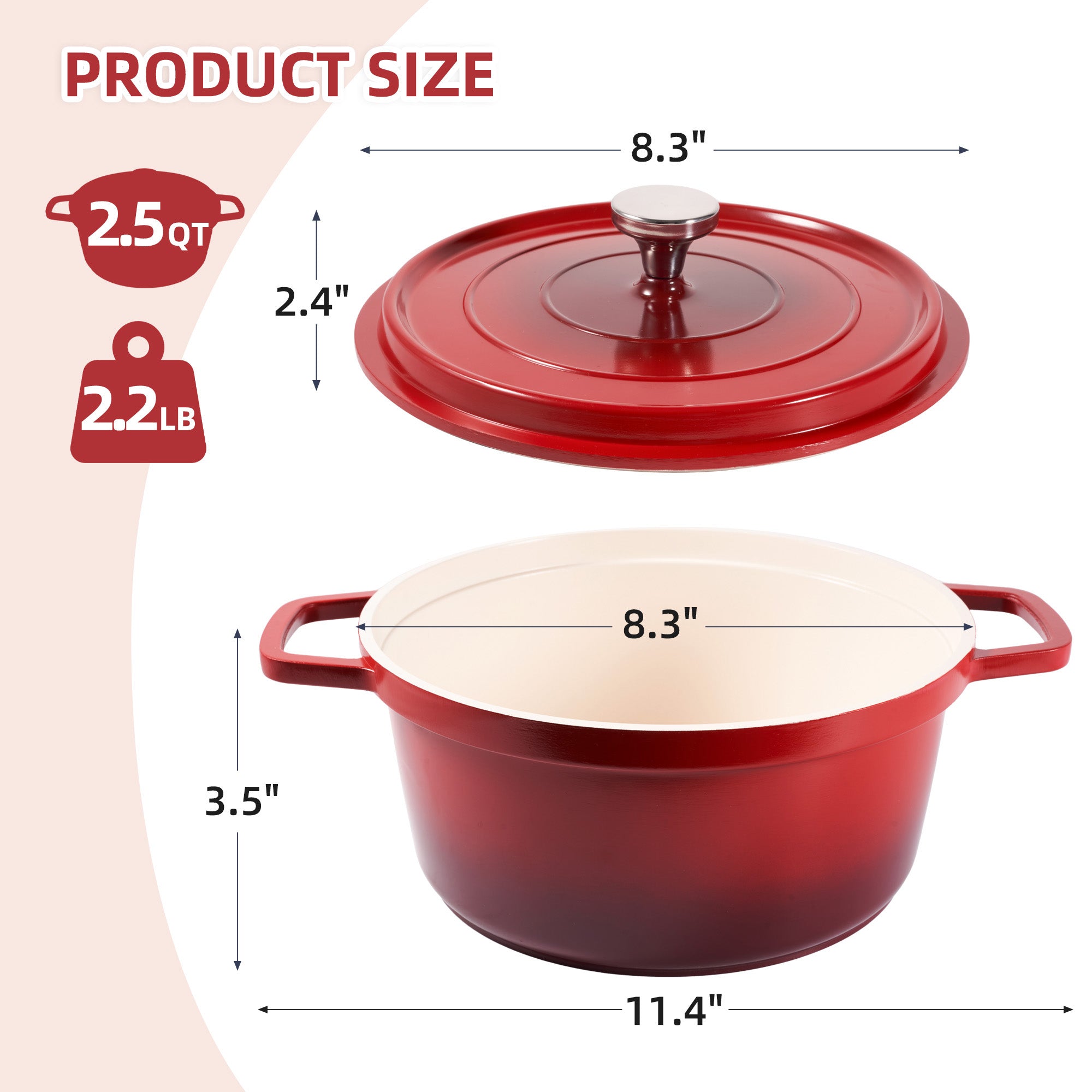 - LIGHTWEIGHT DUTCH OVEN - Comprised from lightweight cast aluminum, weighs 70% less than the typical CAST IRON dutch oven. The 2.5 QT dutch oven pot is only 2.2 pounds; 5 QT only weighs 3 pounds.