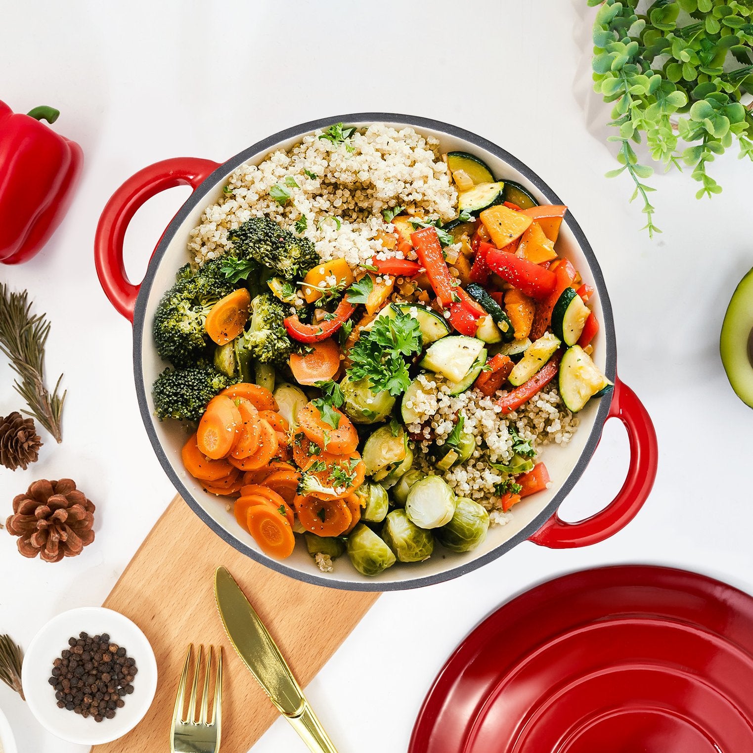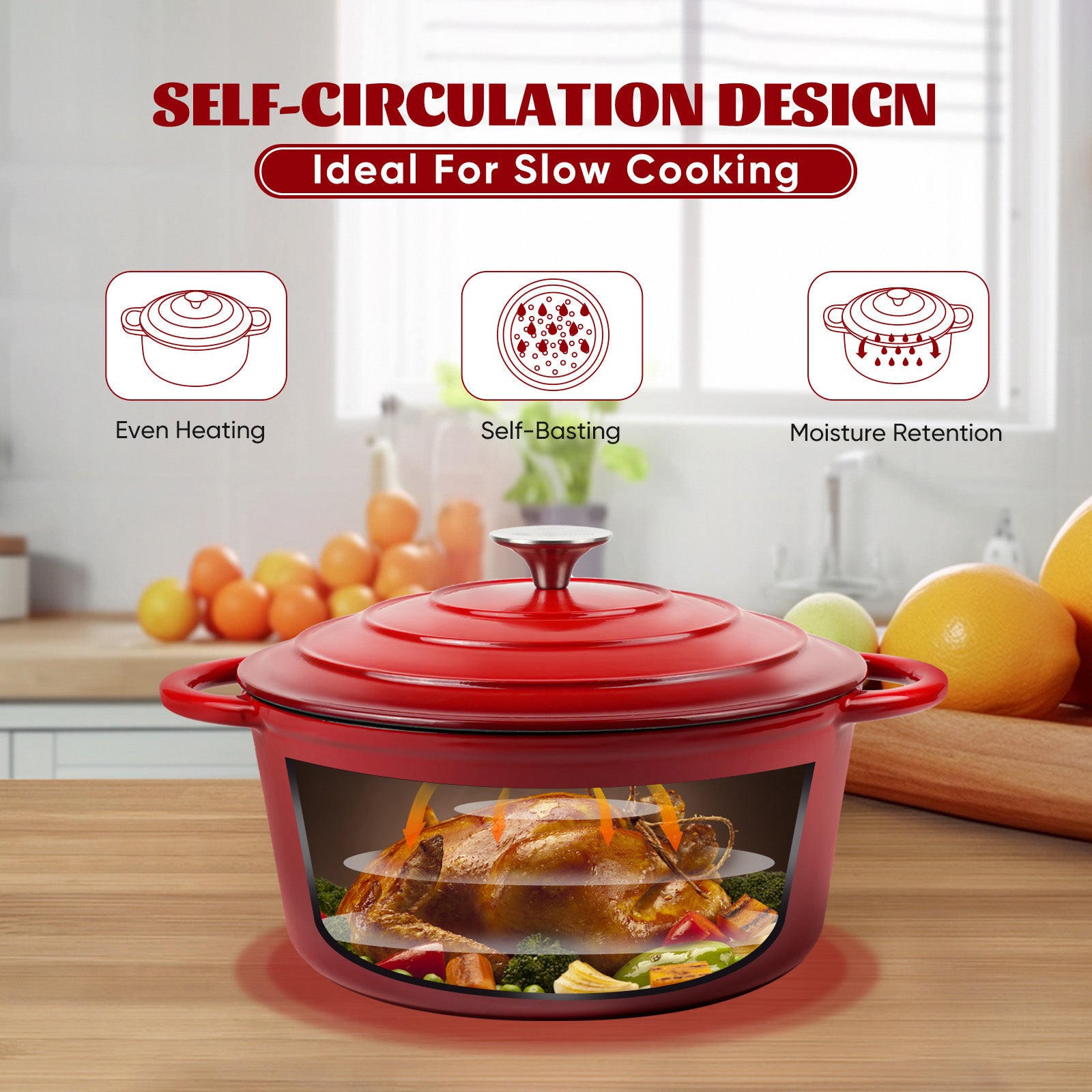 - Color: Red — vibrant, oven-safe enamel finish that enhances kitchen presentation
