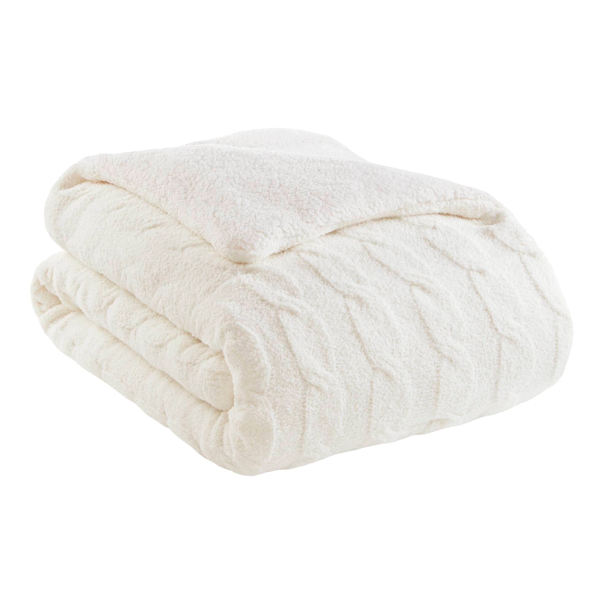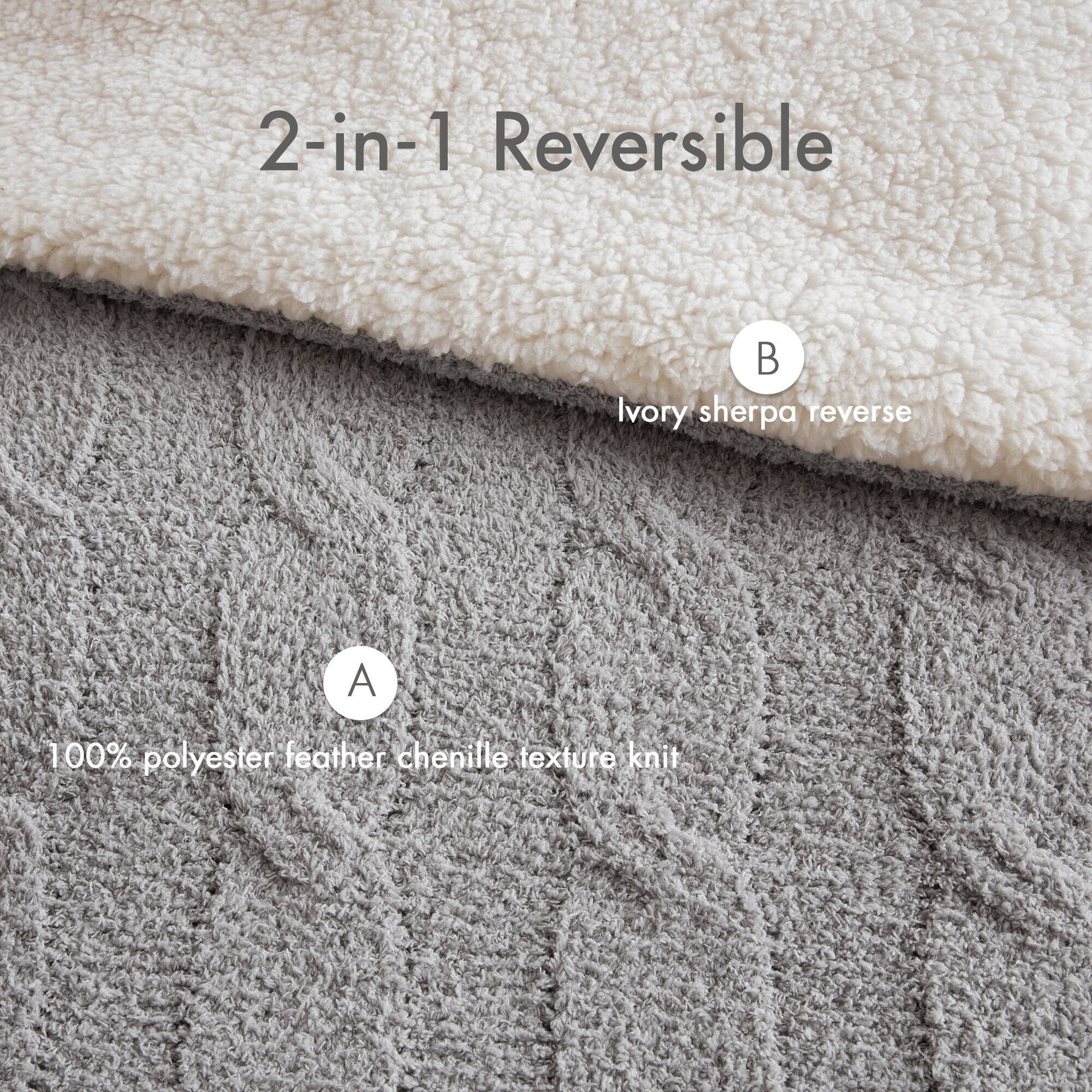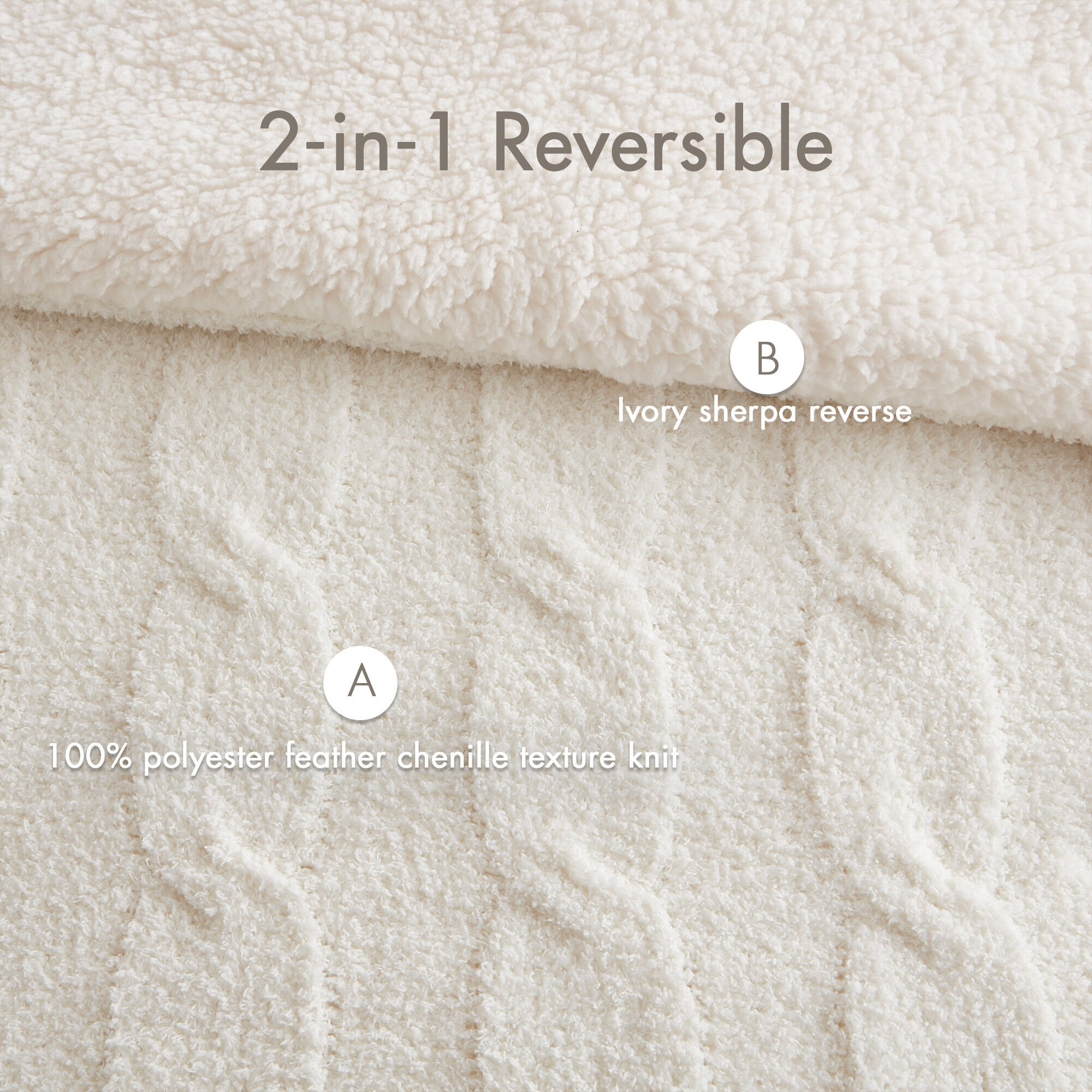 - Materials: Top: 100% polyester 420gsm solid feather chenille waffle knit; Reverse: 100% polyester 200gsm ivory sherpa