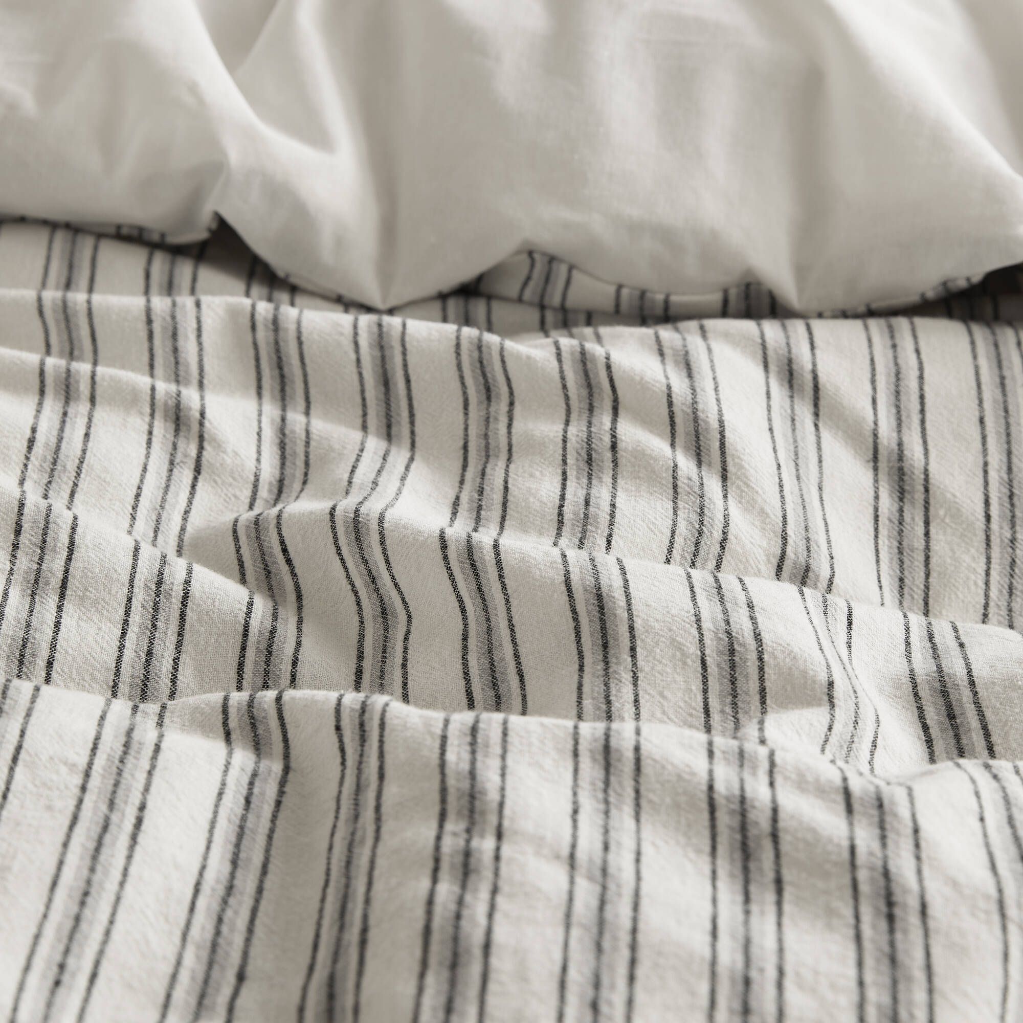 - Timeless Stripe Design - The classic yarn-dyed stripe pattern in soft hues adds casual charm to your bedroom, easily complementing your personal style.