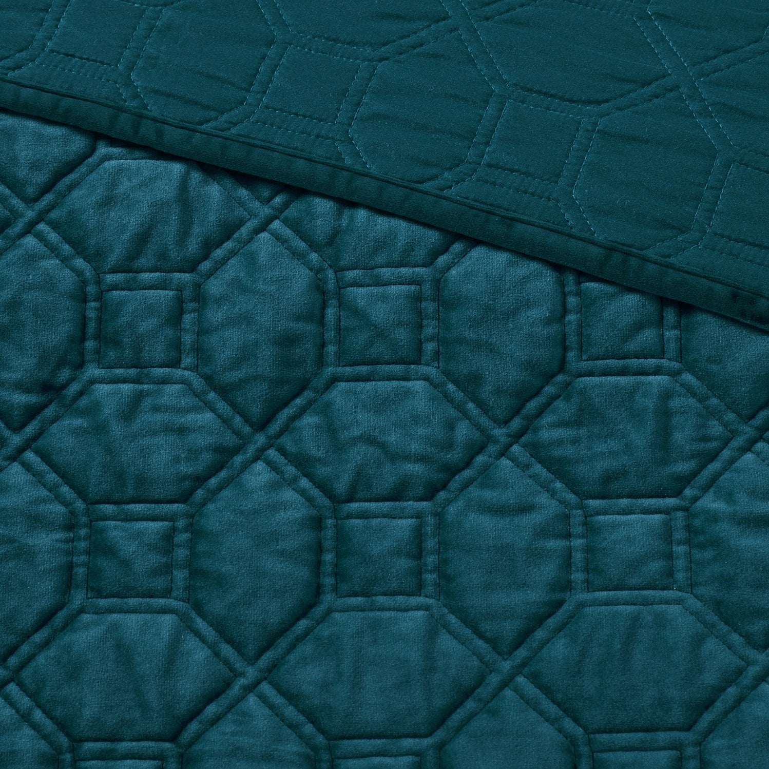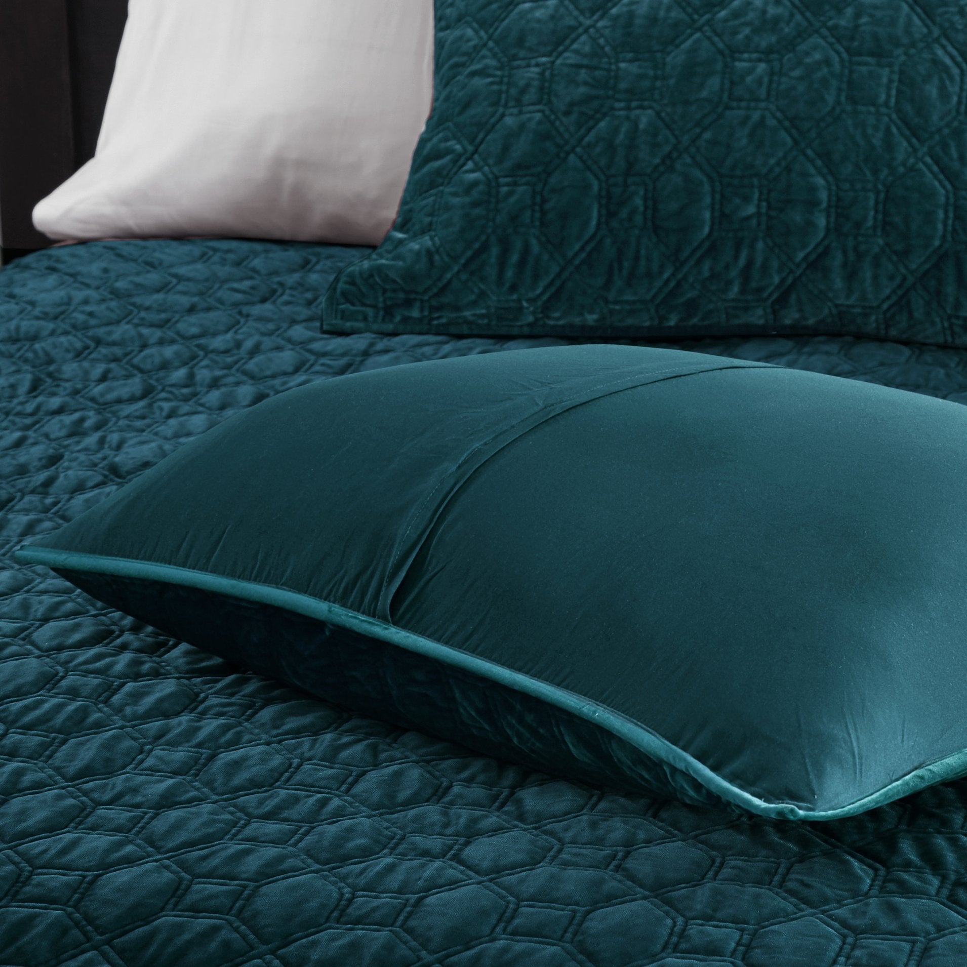 Refresh your bedroom with the Madison Park Harper Velvet 3-Piece Quilt Set—an elegant yet cozy layering option that combines plush velvet texture with a modern geometric quilted pattern. Designed for everyday comfort and easy styling, this set includes a full/queen quilt and two matching shams finished in a rich teal hue, plus an antimicrobial treatment to help reduce bacteria and odors for longer-lasting freshness.