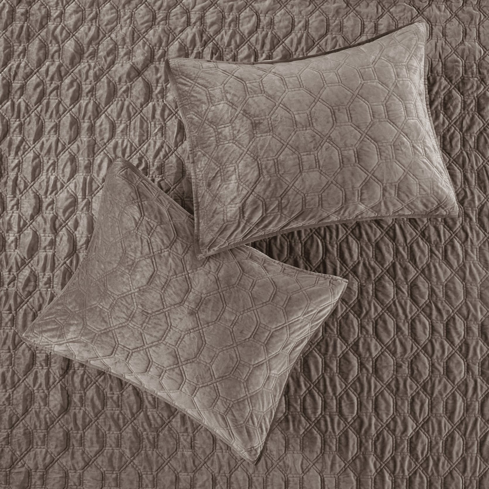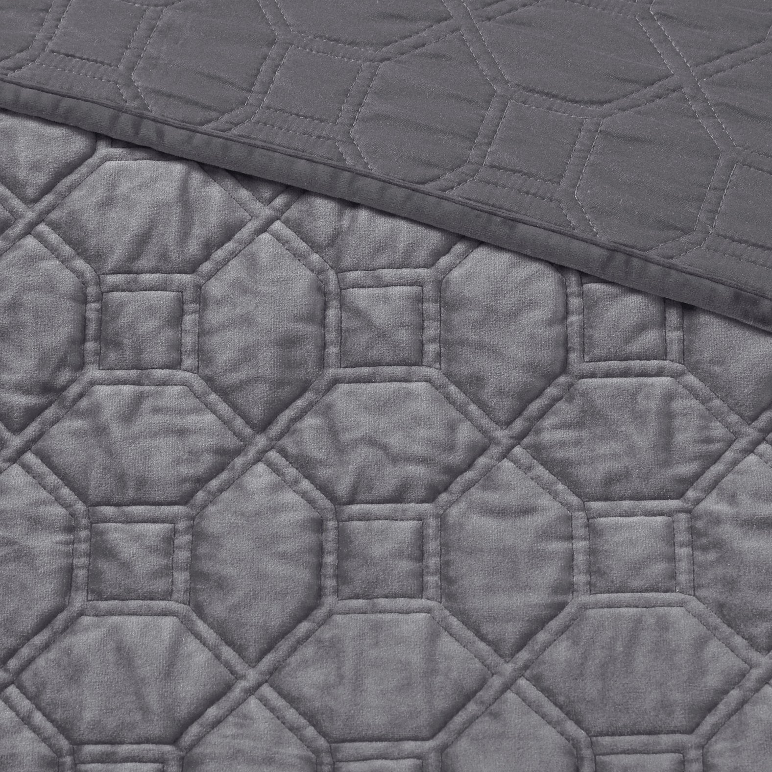 - Fabric & Finish: 100% polyester velvet face with a quilted geometric design and microfiber reverse for a soft hand and durable finish