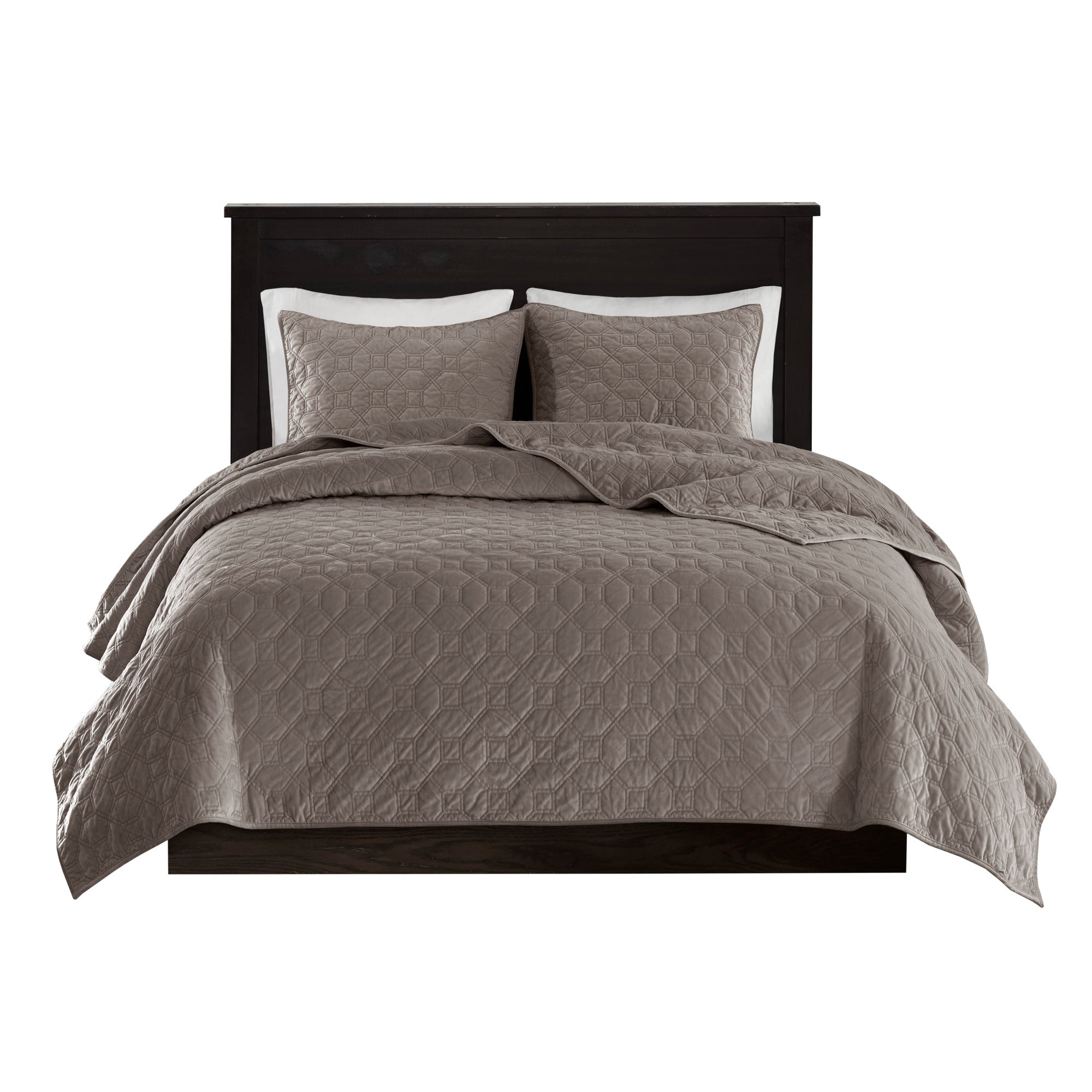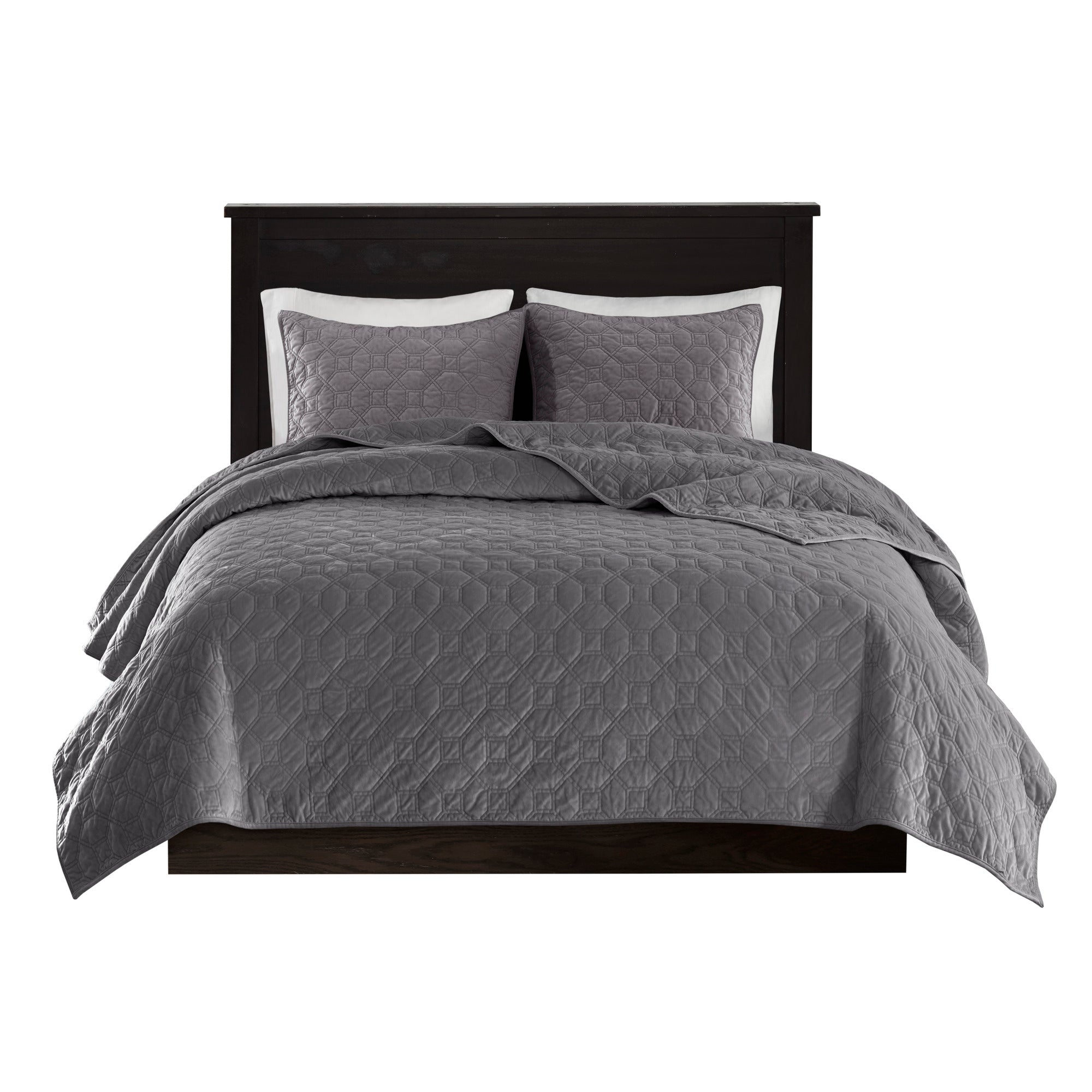 Update your bedroom with the luxurious softness and understated elegance of this 3-piece velvet quilt set. Its plush polyester velvet surface and geometric quilting deliver a rich, tactile look while the microfiber reverse and cotton-rich fill create comfortable layering that’s ideal year-round. An antimicrobial treatment helps reduce bacteria buildup and odors so the set stays fresher between washes, and coordinated shams complete the polished ensemble.