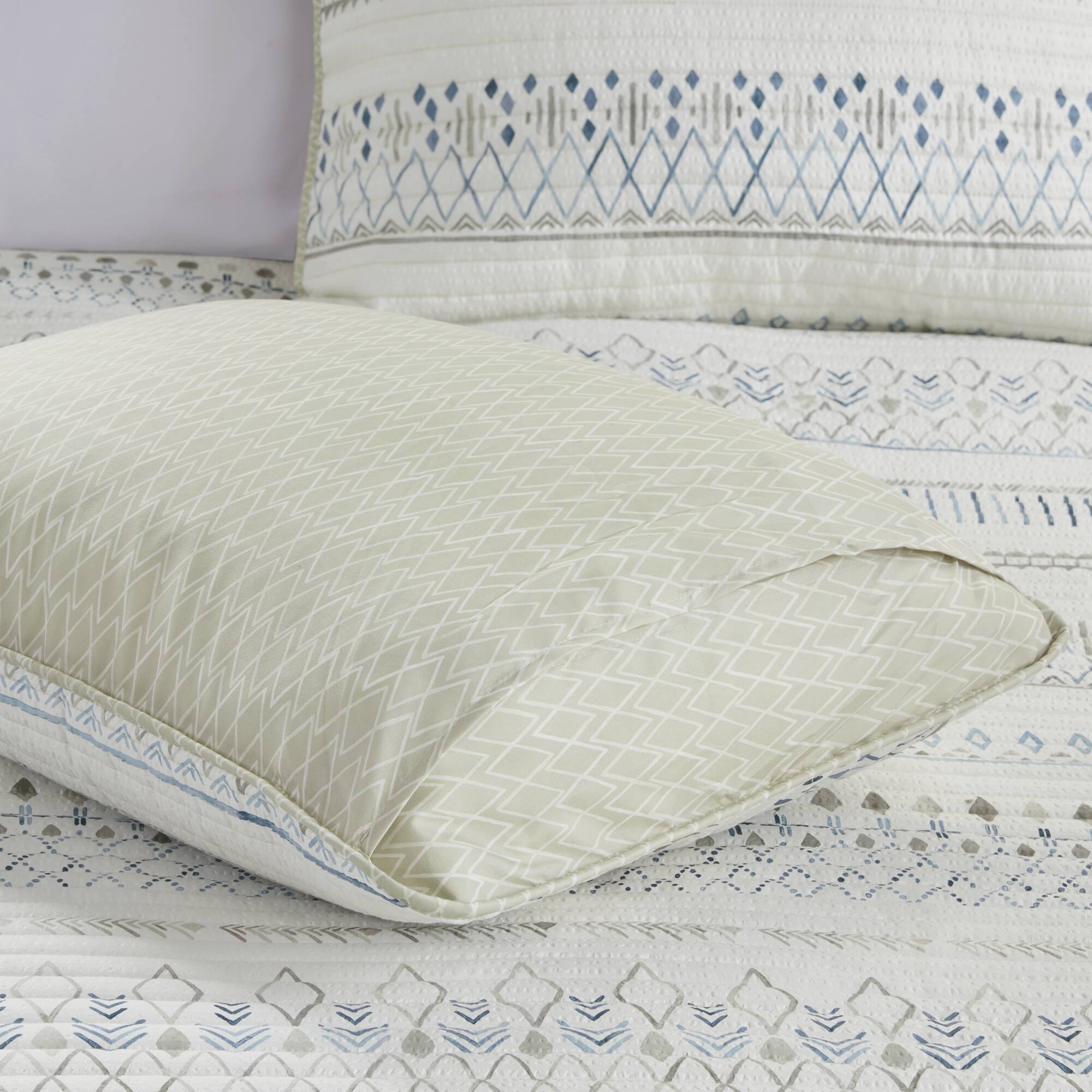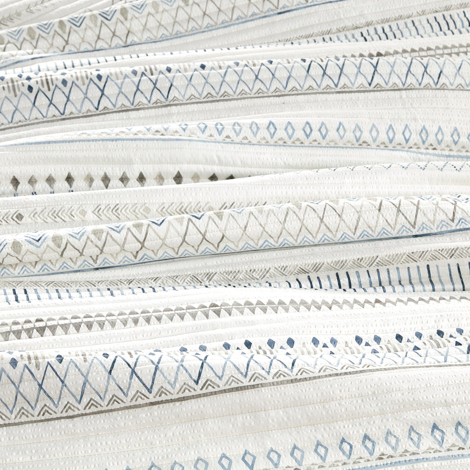 Bring a fresh, Southwest-inspired look to your bedroom with this lightweight, reversible quilt set. The soft beige face features a subtle diamond print in blue and taupe, while the taupe diamond pattern on the reverse offers a complementary farmhouse aesthetic. Channel quilting adds texture and structure for an elevated, layered look. Treated with an antimicrobial finish, this set helps reduce odor-causing bacteria and extends fabric life—ideal for year-round comfort as a standalone coverlet in warm months or an extra layer in cooler weather.