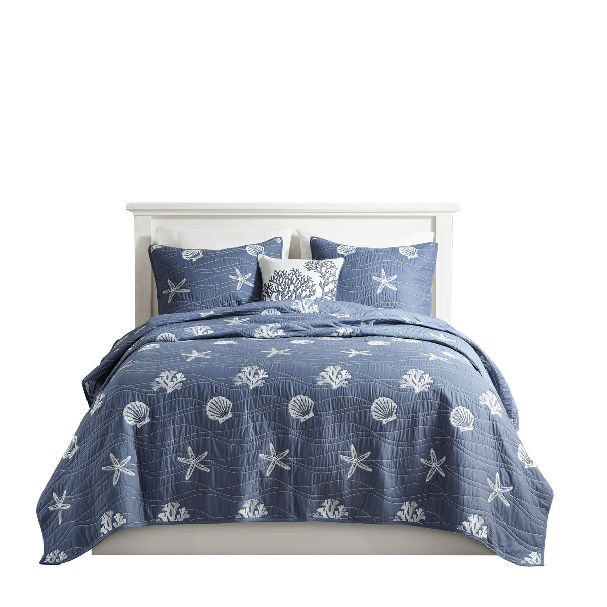 Bring a breezy coastal retreat to your bedroom with this reversible embroidered cotton quilt set. Soft, prewashed cotton percale and delicate starfish and seashell embroidery create a relaxed seaside aesthetic, while thoughtful construction and OEKO-TEX certification ensure a comfortable, safe sleep environment. The set’s reversible design and included decorative pillow make it easy to style and layer for year‑round use.