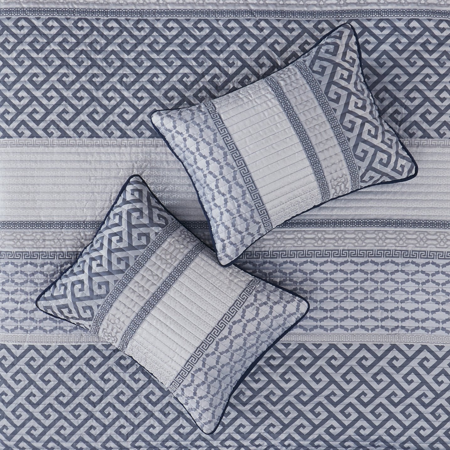 - Luxury and elegant jacquard 4 piece quilt set in shades of navy and gray