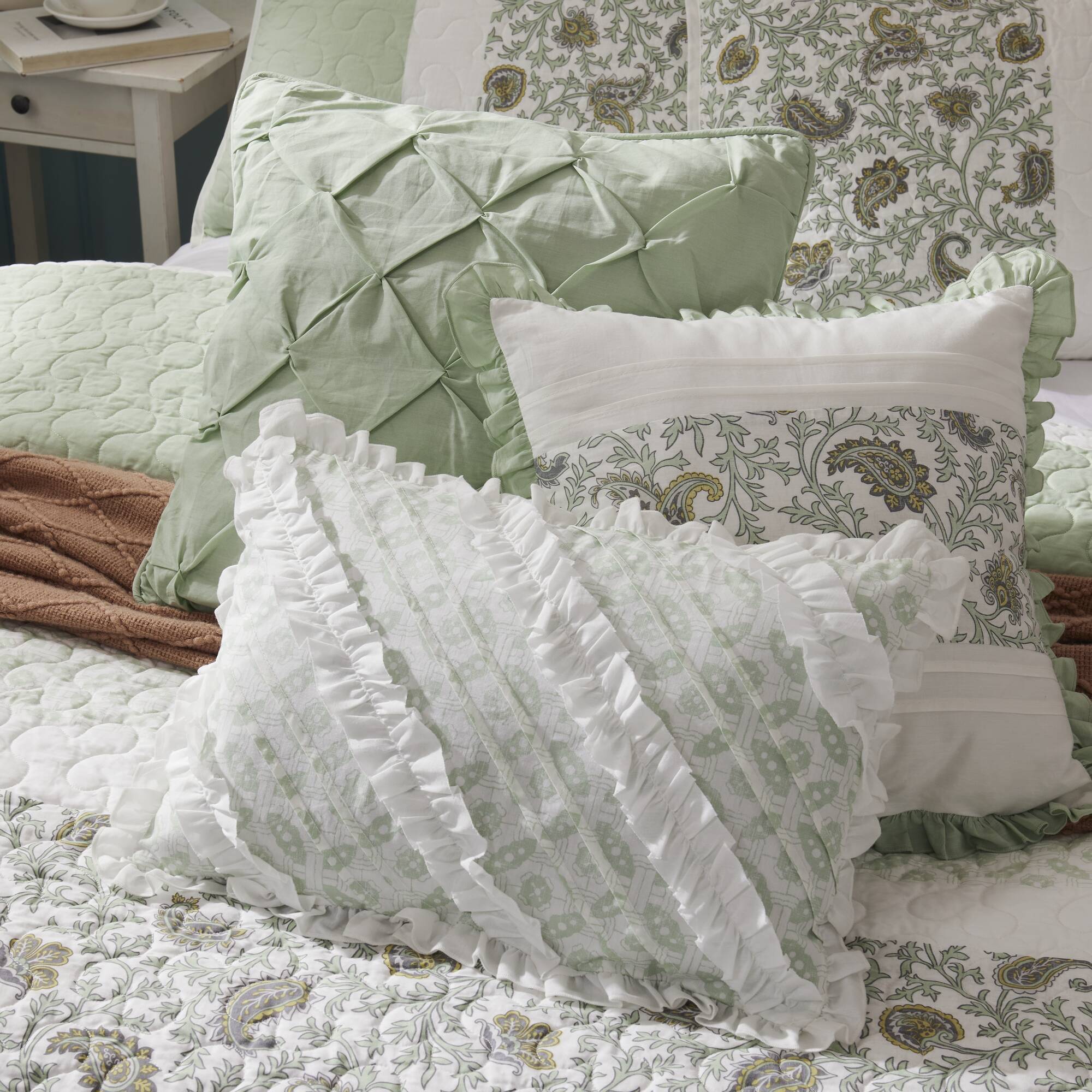 - 【6-Piece Quilt Set】 Includes 1 floral quilt, 2 shams, and 3 decorative pillows with pleating and ruching, perfect to complement farmhouse or cottage-style bedding.