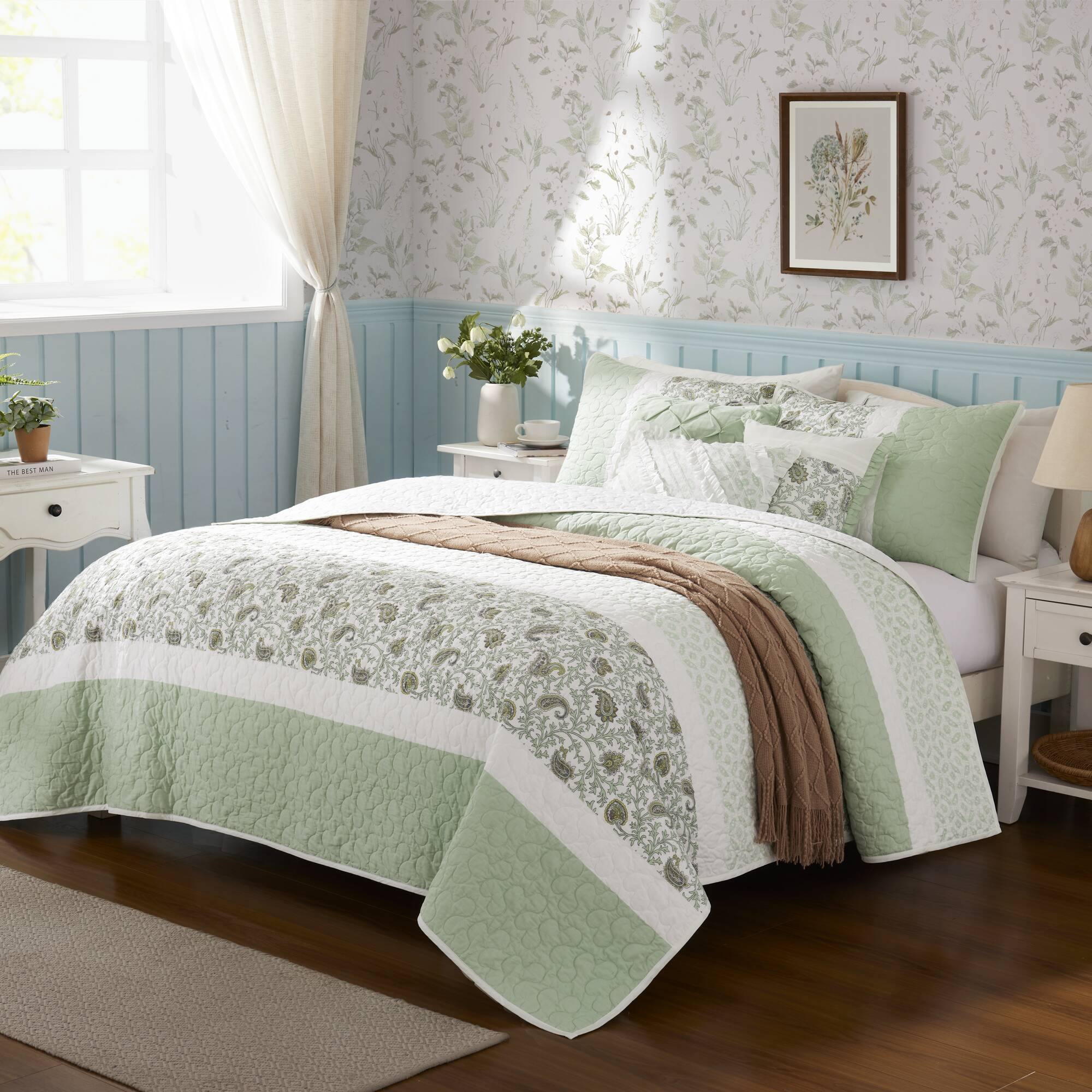 Elevate your bedroom with this classic 6-piece cotton percale quilt set, designed for breathable comfort and a tailored look. The lightweight coverlet and coordinated shams provide a crisp, versatile foundation, while three decorative pillows add texture and finishing detail—ideal for everyday use or layering with additional bedding.