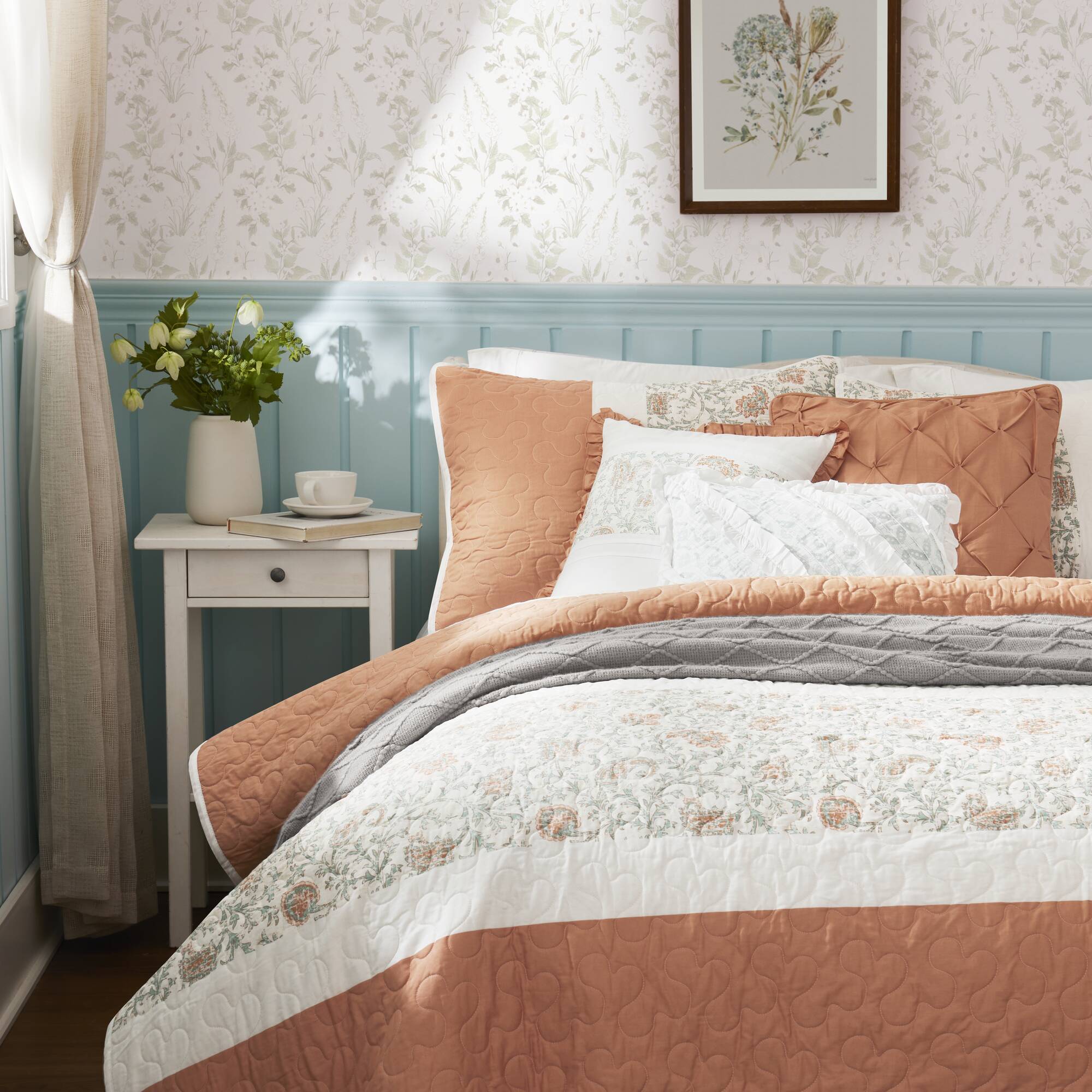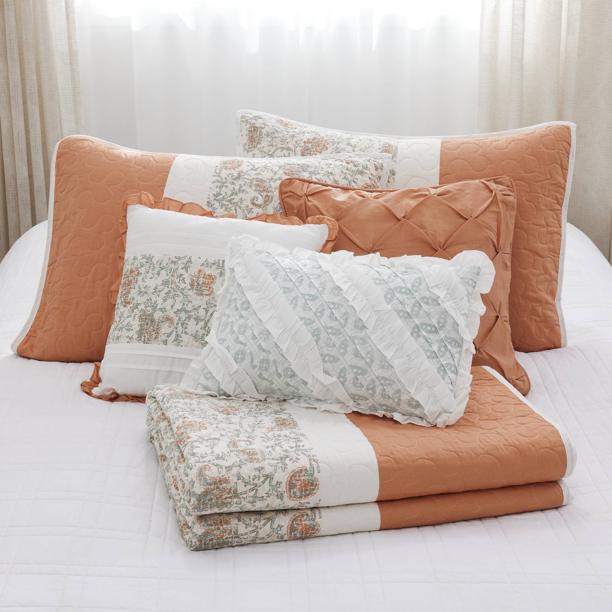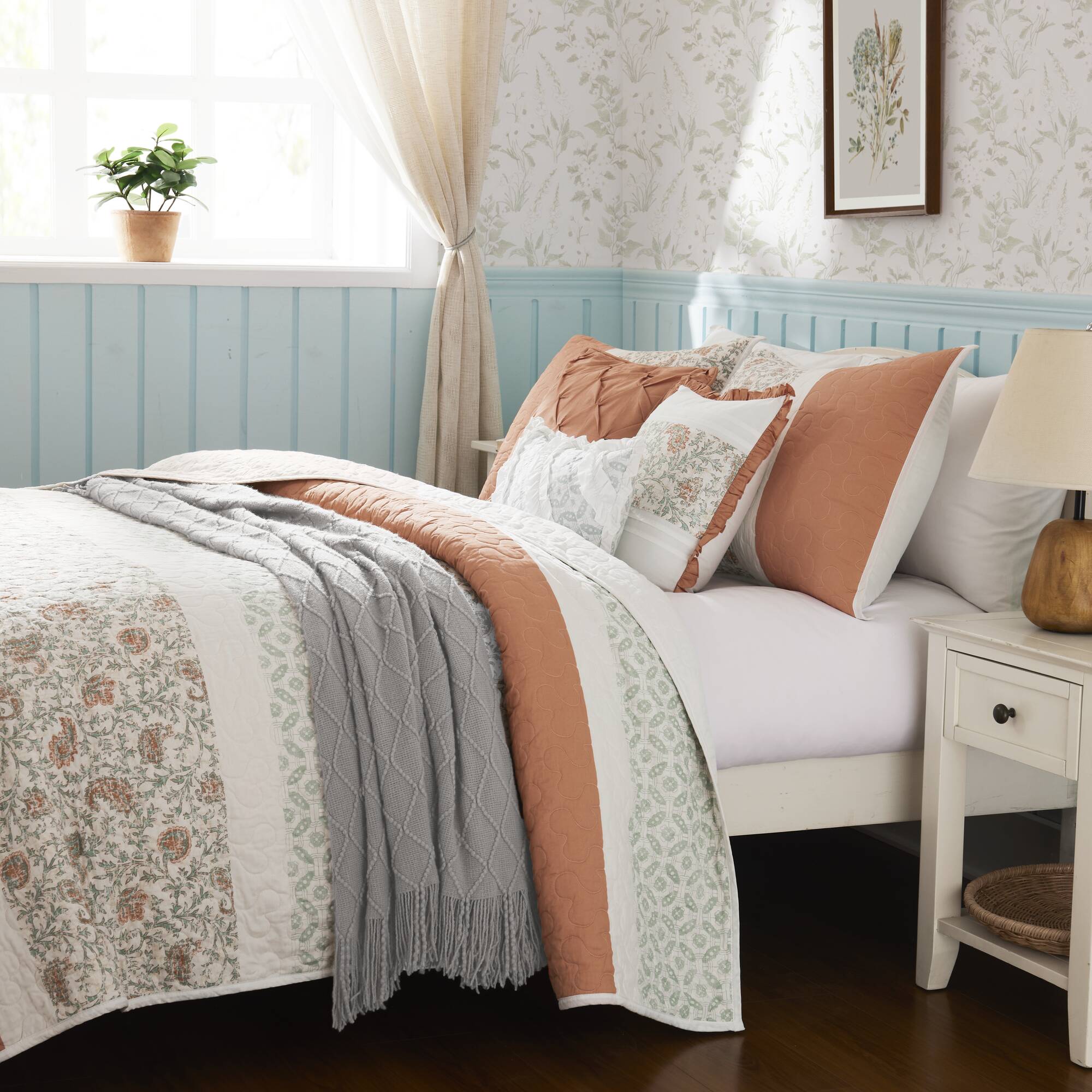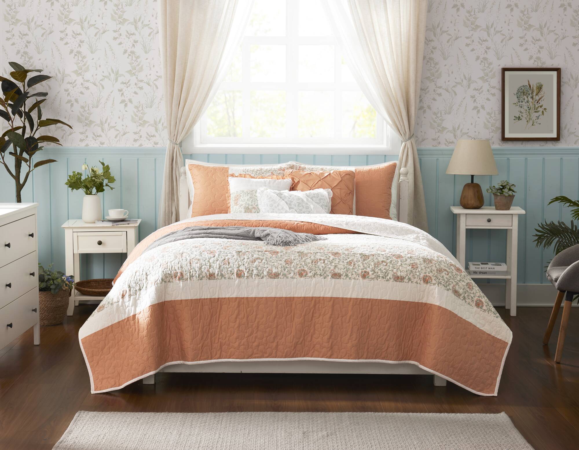 - Set includes quilt, 2 shams, and 3 decorative pillows