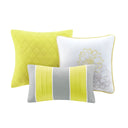 - Set Includes: 1 quilt, 2 standard shams, and 3 decorative pillows (square, oblong, and lumbar).