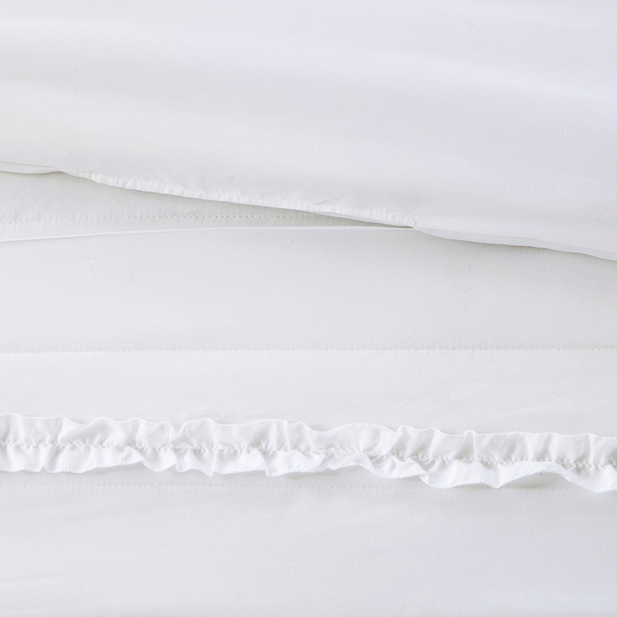 Create a cozy, shabby-chic retreat with the Celeste Collection — a versatile 2-in-1 duvet set that blends the softness of microfiber with quilted texture and ruffle detailing. Designed for easy styling and seasonal adaptability, this set can function as a lightweight coverlet when buttoned or as a full duvet cover when paired with your preferred comforter insert (insert not included). It delivers a polished layered look and practical protection for your bedding while adding vintage-inspired charm to your bedroom.