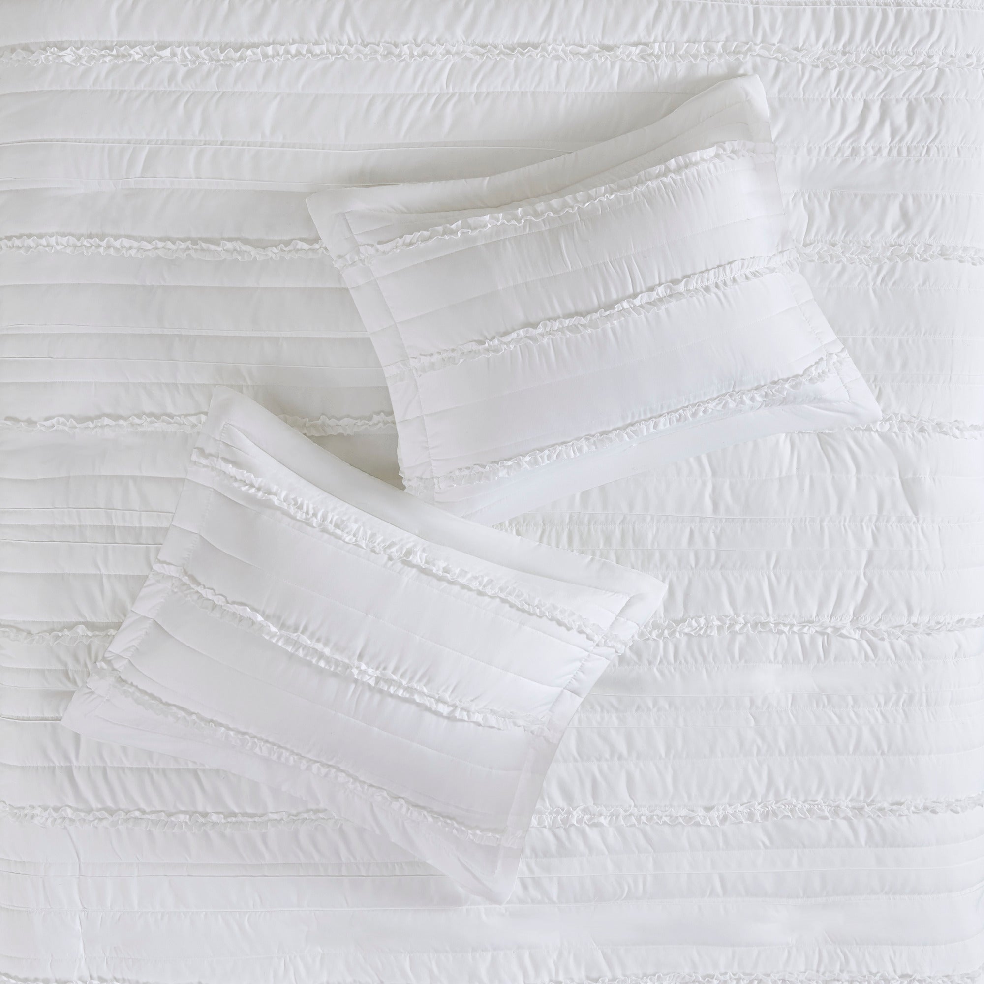- Materials & Construction: Duvet and shams combine 85gsm polyester microfiber and a 180gsm 90% cotton/10% other fiber quilted filling for a soft, textured feel; ruffle face detail adds shabby-chic character.