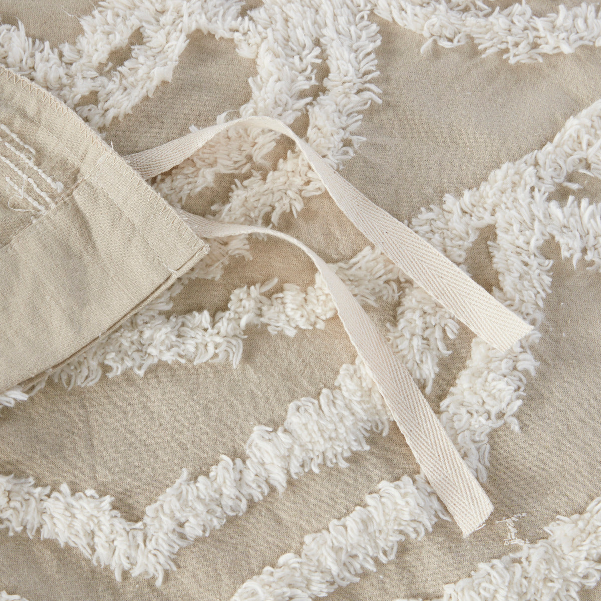 Refresh your bedroom with the Laetitia Tufted Cotton Chenille Medallion Duvet Cover Set — a boho-inspired, shabby-chic ensemble that blends textured charm with all-season comfort. Crafted from 100% cotton with a tufted chenille medallion on the face and a smooth cotton reverse, this set brings layered visual interest while remaining soft, breathable, and OEKO-TEX certified for safe, chemical-free use. Thoughtful details like button closure and interior corner ties keep your insert secure and properly positioned (insert not included).
