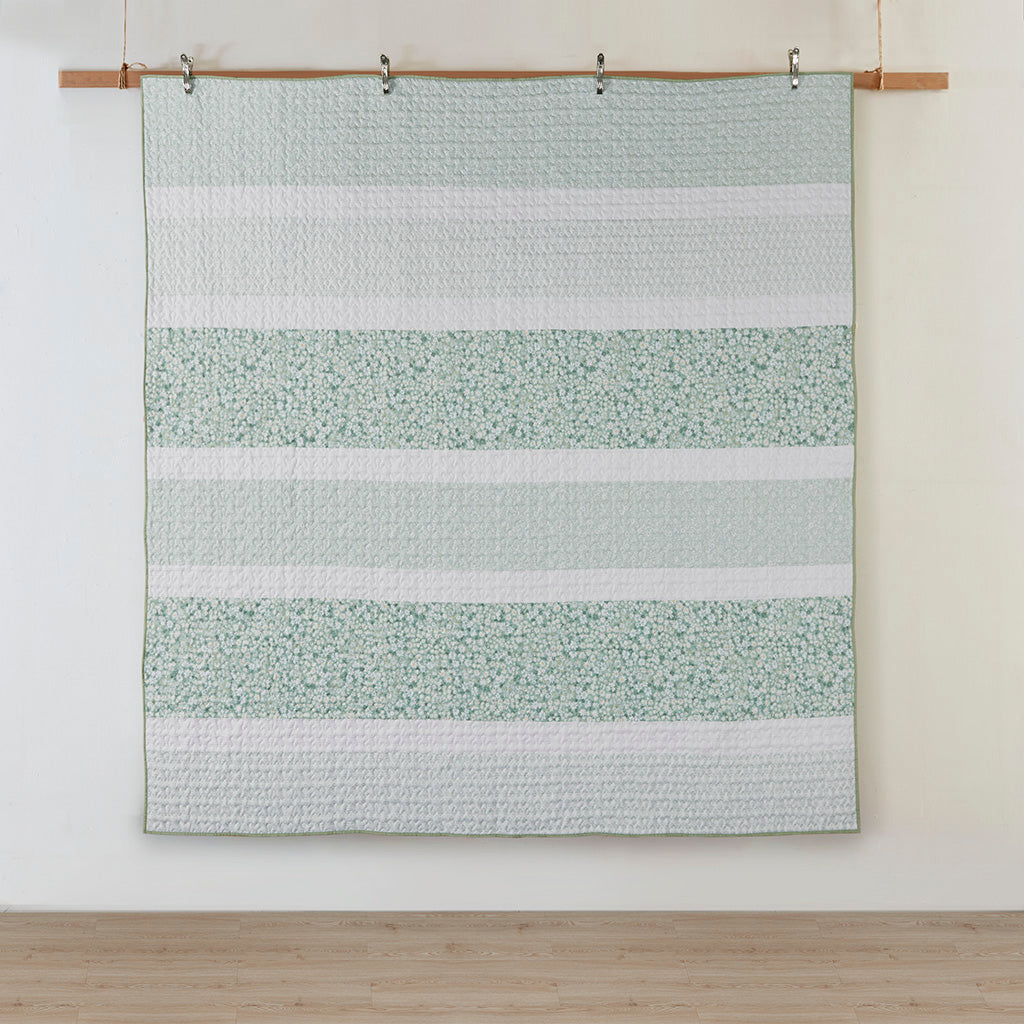 - Shabby Chic/Farmhouse style featuring three floral/botanical print design with vermicelli quilting