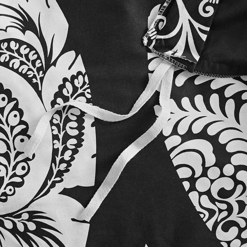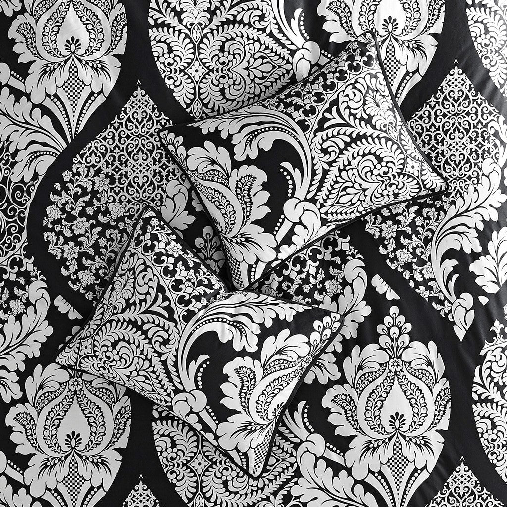 - Features Intricate damask design in black and white contrasted colors and solid black color on the reverse