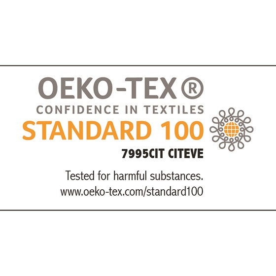 - Oeko-Tex Certified, includes no harmful substances or chemicals (# 7995CIT)