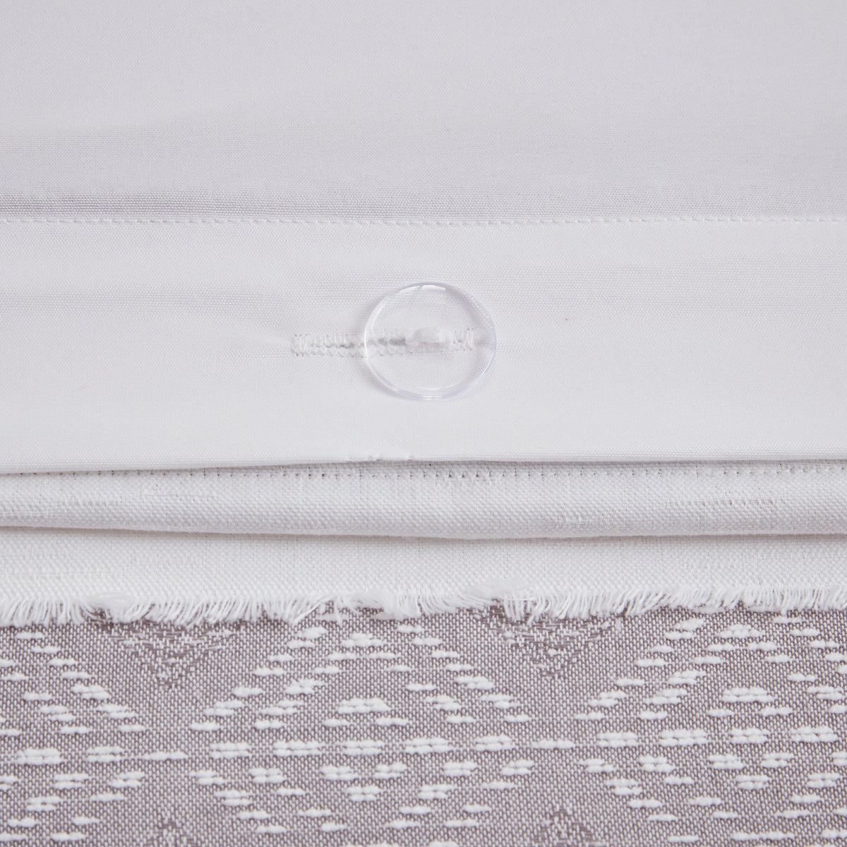 - Color & design: Off-white ground with clipped jacquard stripes in taupe, gray, birch, and tan; solid white reverse for a bright, complementary look