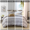 Add relaxed, contemporary texture and layered comfort to your bedroom with this oversized chenille jacquard comforter set. Designed for both style and easy maintenance, the duvet-style cover showcases soft stripes in charcoal, dark golden yellow, and ivory, and pairs with coordinated shams and decorative pillows to create a finished, hotel-inspired look. Removable components and hidden fastenings maintain a clean aesthetic while making laundering straightforward.