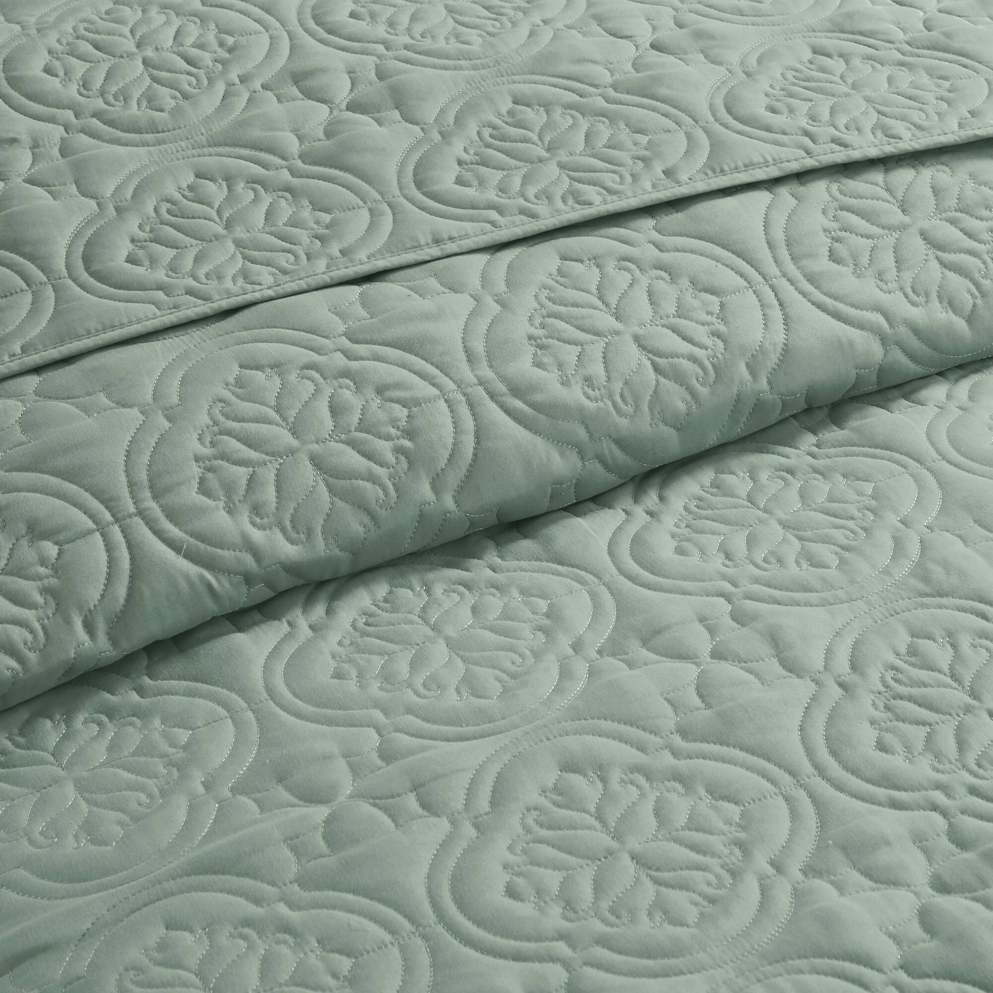 Refresh your bedroom with this versatile 3-piece reversible bedspread set that blends comfort, style, and easy care. Designed to drape generously for a tailored yet relaxed look, the medallion-quilted texture adds subtle dimension while the reversible design gives you two coordinated looks in one.