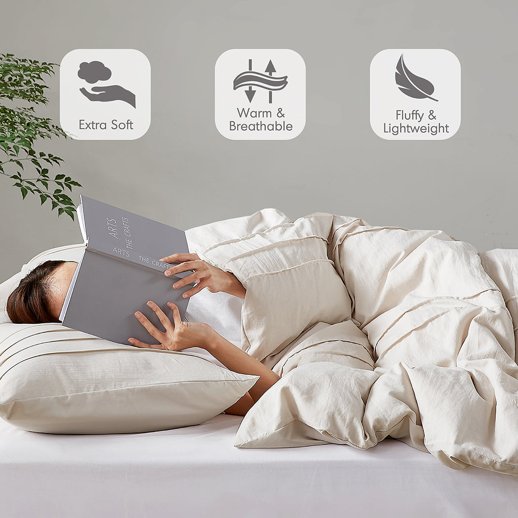 Experience effortless elegance and cloud-like comfort with this Soft Washed Pleated Duvet Cover Set. Designed for year-round breathability and a sophisticated grid pinch-pleat pattern, the ultra-soft, pre-washed microfiber feels gentle against the skin while delivering durable, low-maintenance performance. Thoughtful details—like a secure button closure and OEKO-TEX certification—ensure a healthy, well-made bedding solution that keeps your comfort consistent night after night.