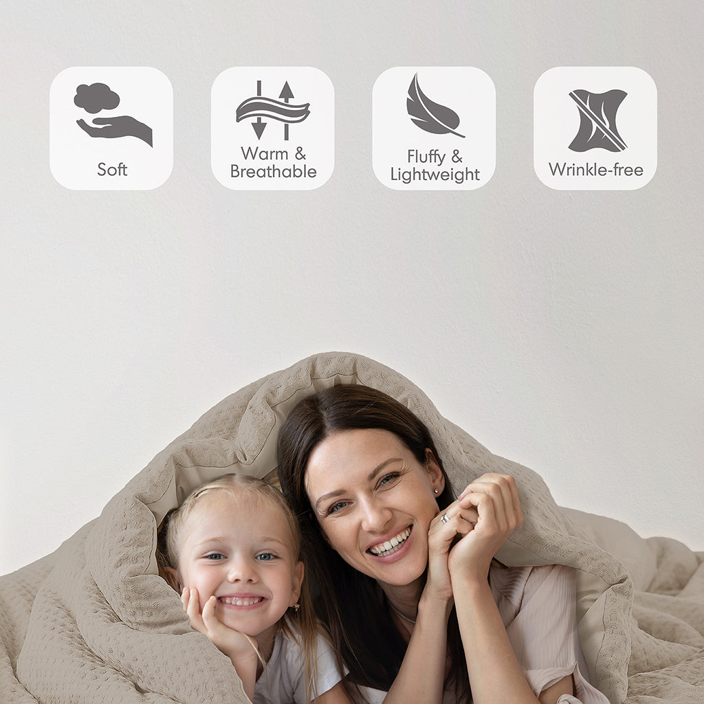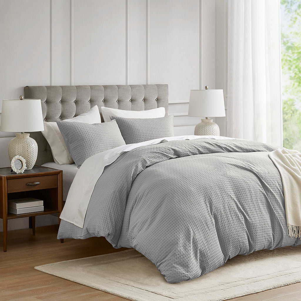 Transform your bedroom into a calm, cozy retreat with this waffle-weave textured duvet cover set—designed for year-round comfort, effortless care, and lasting style. The lightweight yet insulating weave adds visual depth and a soft, tactile finish that enhances any décor while providing reliable warmth in cooler months and breathable comfort in warmer seasons.