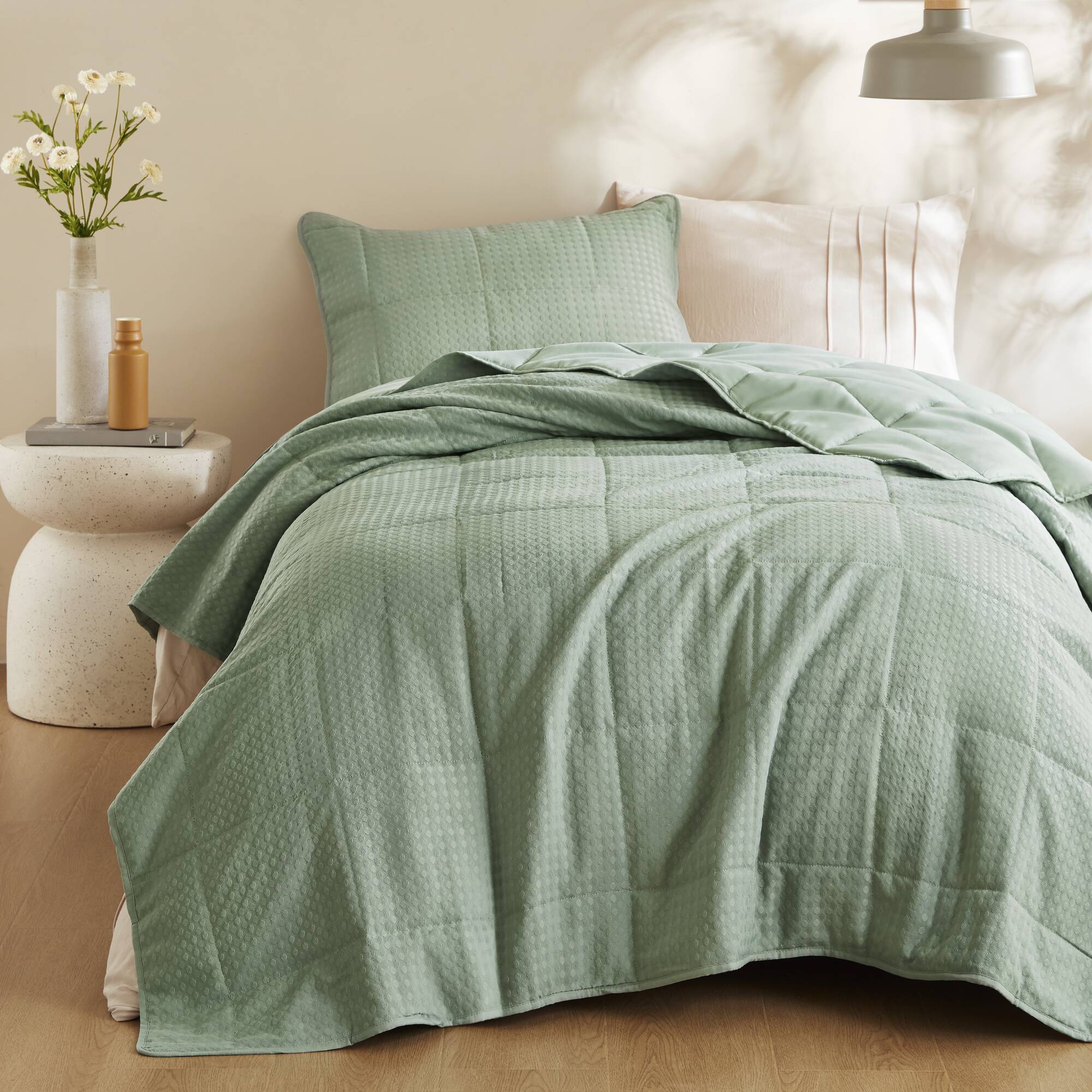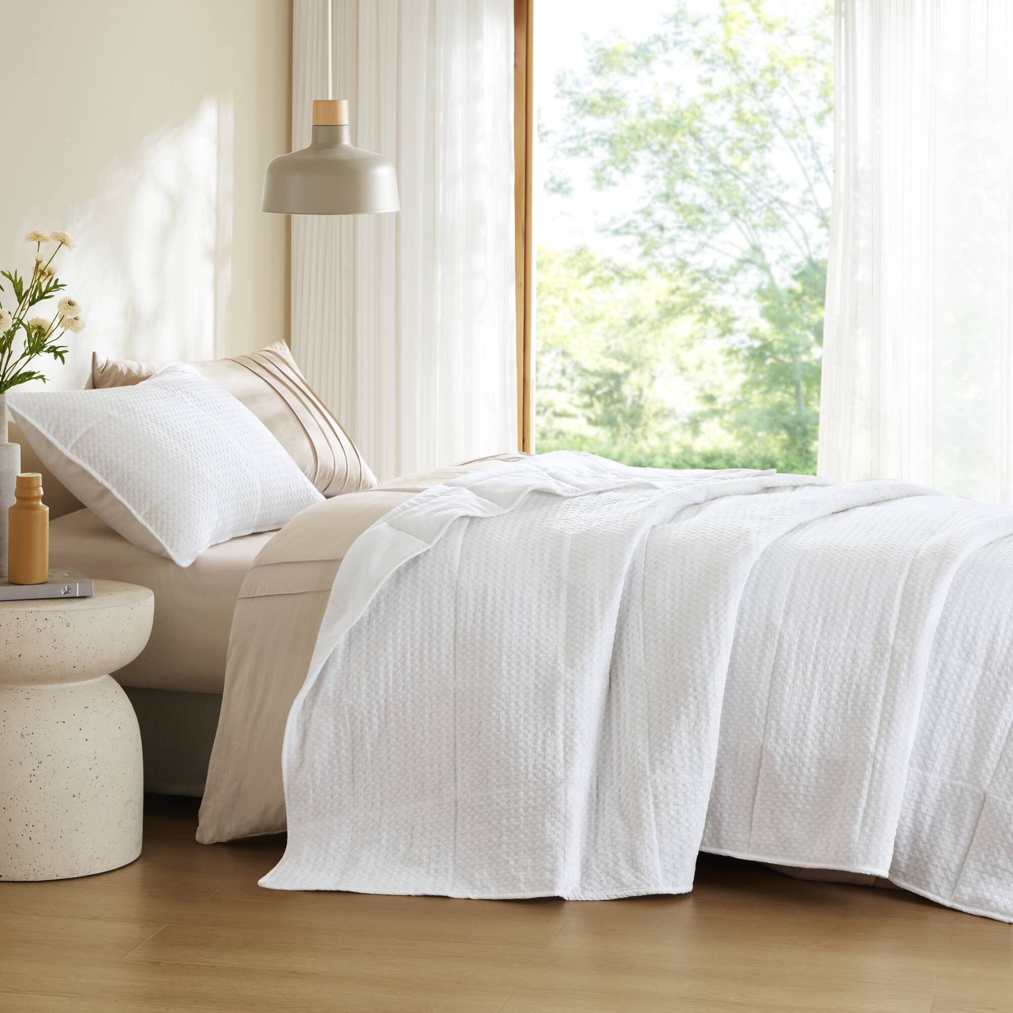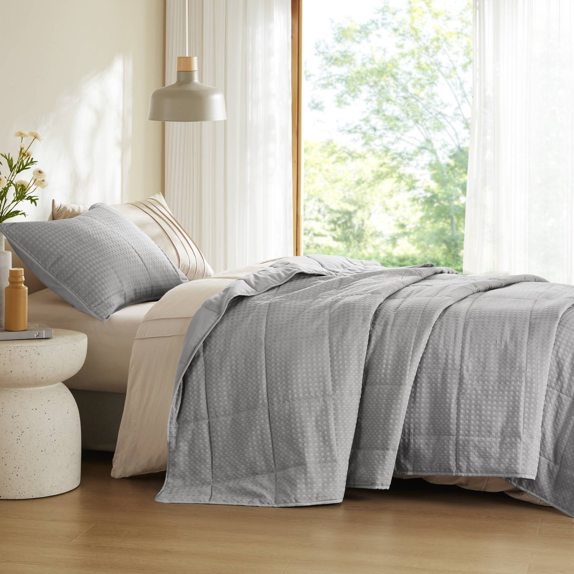 Refresh your bedroom with a refined, contemporary quilt set that blends classic quilting with an elevated waffle-weave texture for a soft, airy feel. Lightweight yet cozy, this set is designed for year-round comfort, offering breathable warmth and a plush hand that enhances both modern and transitional decor.