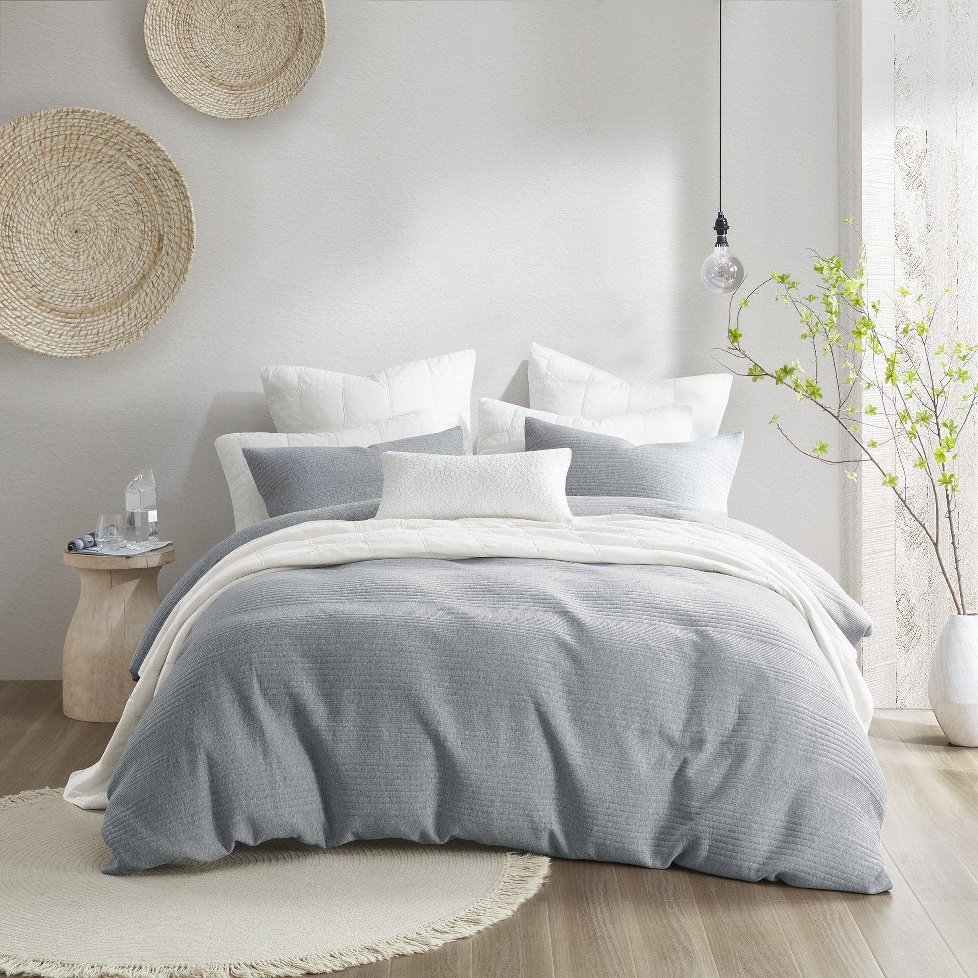 Experience casual comfort with a softly textured duvet set designed for relaxed living. Crafted from a heathered cotton-lyocell jersey and finished in a matelassé knit, this 3-piece set combines breathable softness with subtle horizontal stripe texture to create a cozy, lived-in look that layers effortlessly with your existing bedroom decor.
