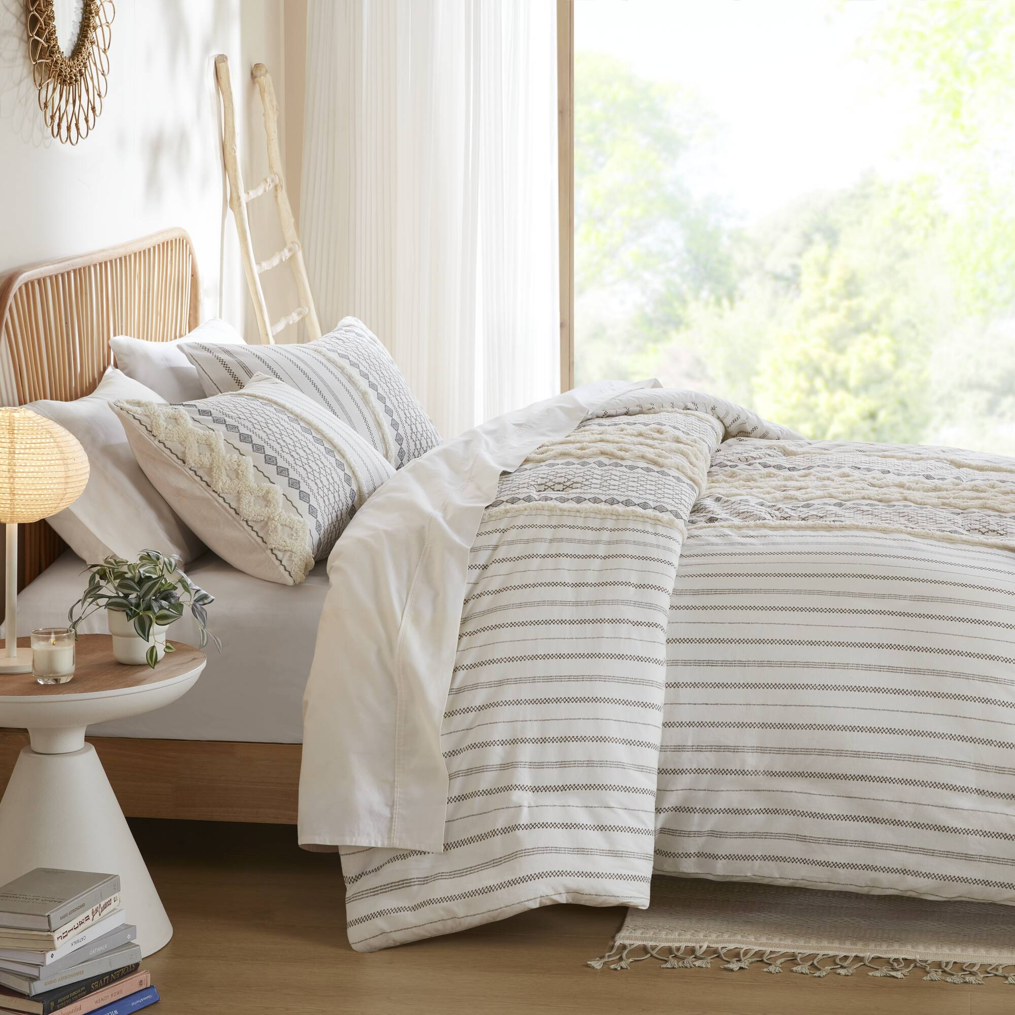Refresh your bedroom with a soft, mid-century inspired update that blends textural charm and easy-care comfort. The Imani Cotton Duvet Cover Mini Set pairs geometric tufted chenille detailing with a solid reverse for a layered, sophisticated look that’s cozy enough for everyday use and stylish enough for guest-ready presentation.
