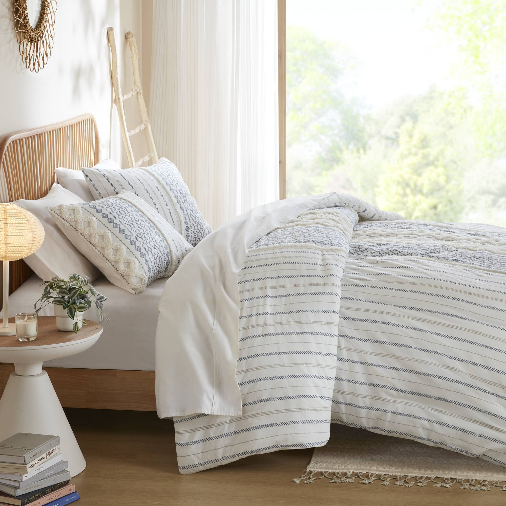Refresh your bedroom with a soft, mid-century inspired update that blends textural charm and easy-care comfort. The Imani Cotton Duvet Cover Mini Set pairs geometric tufted chenille detailing with a solid reverse for a layered, sophisticated look that’s cozy enough for everyday use and stylish enough for guest-ready presentation.