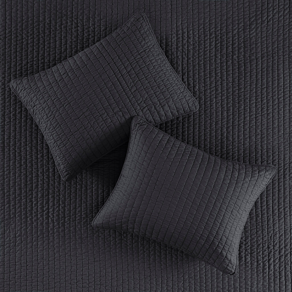 Refresh your bedroom with the Madison Park Keaton reversible quilt set — a simple, casual update that blends cozy farmhouse style with everyday practicality. Soft brushed microfiber and pick-stitch channel quilting create a textured, comfortable finish, while the reversible design and antimicrobial treatment offer versatile looks and lasting freshness.