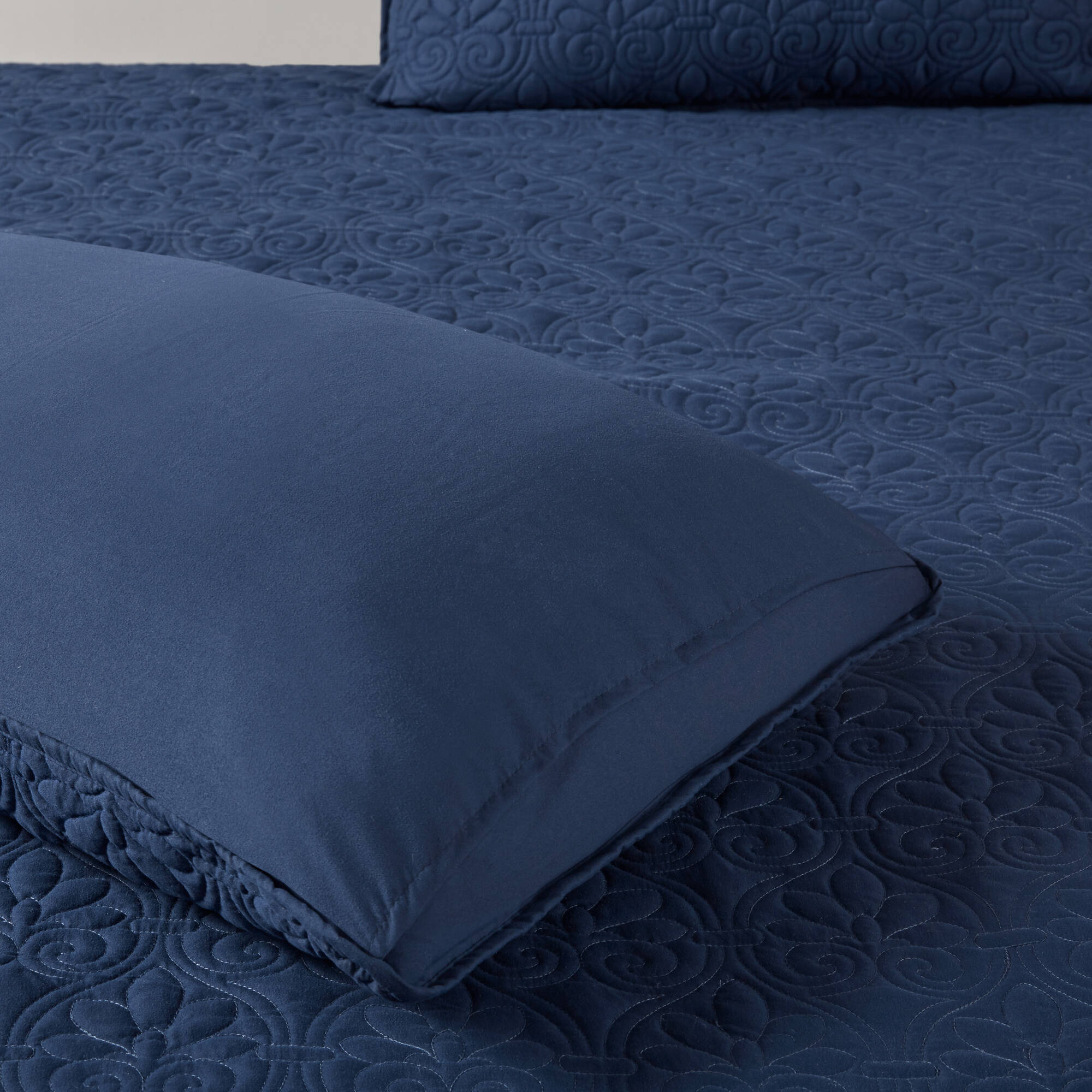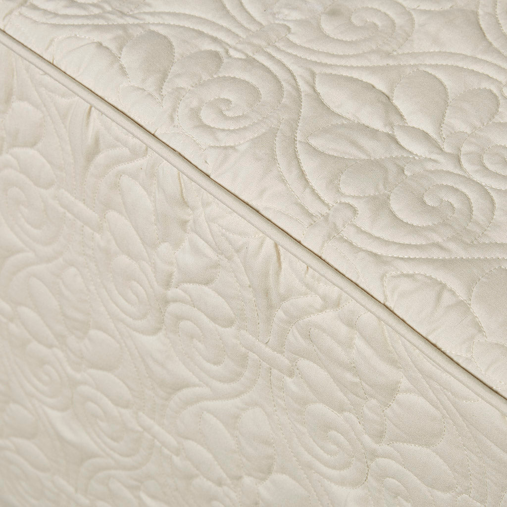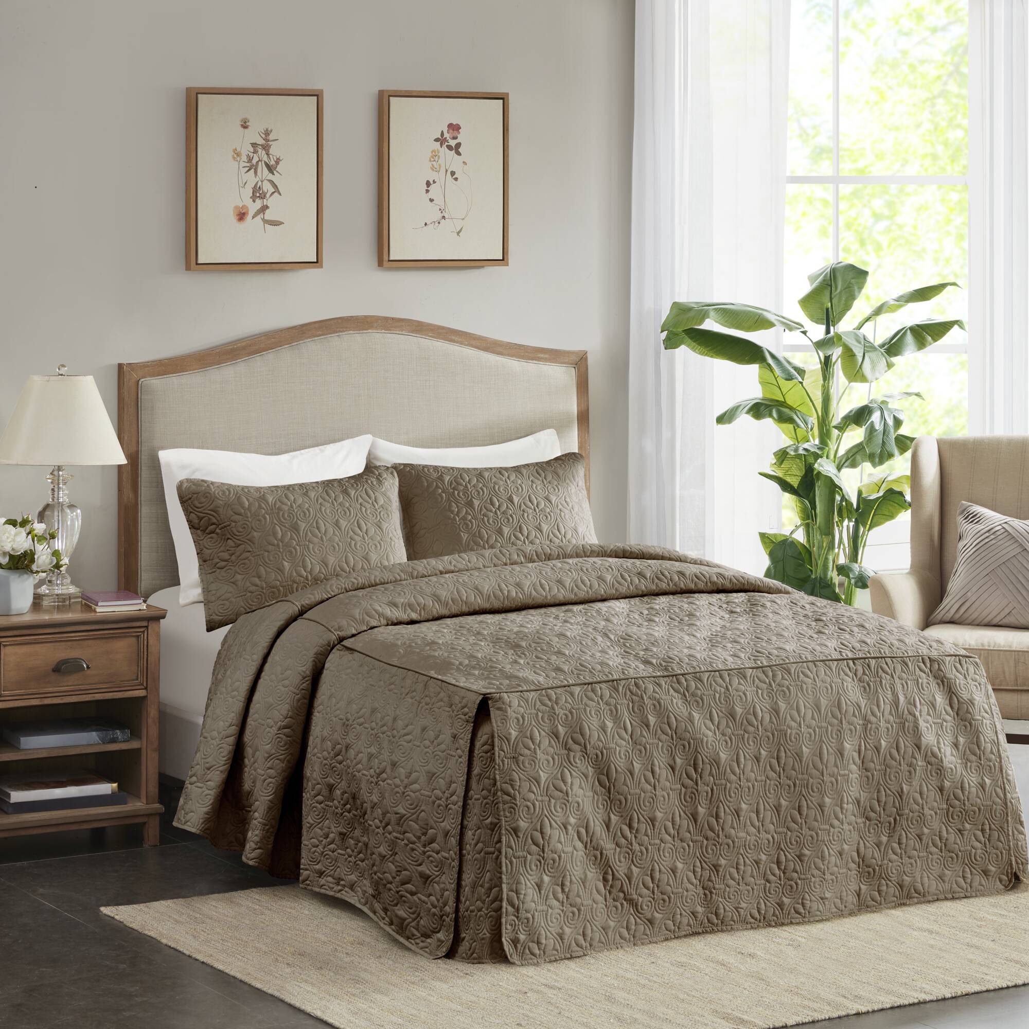 Refresh your bedroom with the Madison Park Quebec 3-piece quilted bedspread set — a cottage-inspired ensemble that blends classic tailoring with modern performance. Designed to add texture and a tailored silhouette, this set features split-corner pleats and box-quilt stitching for a refined, layered look that stays neat night after night. Antimicrobial protection and secure quilting make it a practical choice for everyday use.