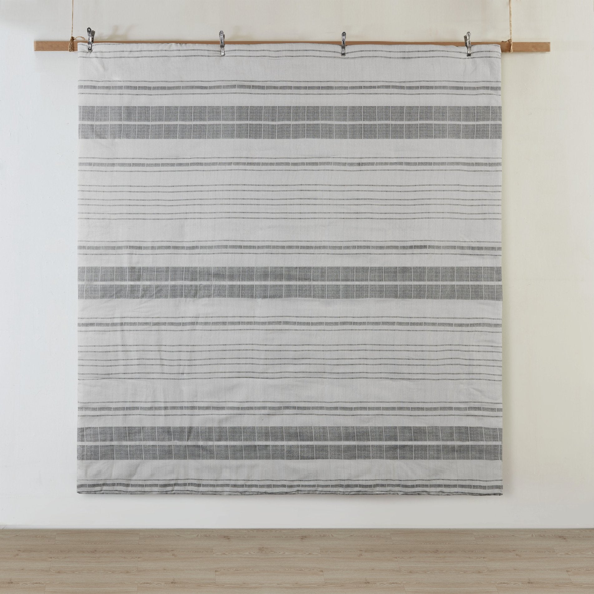 Give your bedroom a fresh, modern farmhouse update with this soft, linen-look stripe duvet cover set. The subtle black stripes on a grey and white slub weave create a relaxed, textured aesthetic that layers easily with both casual and refined decor. Made from a cotton/poly blend, the fabric balances breathability and softness with added durability and wrinkle resistance. Thoughtful details like button closures and interior ties keep your insert secure, while OEKO-TEX certification ensures the materials meet independent safety standards.