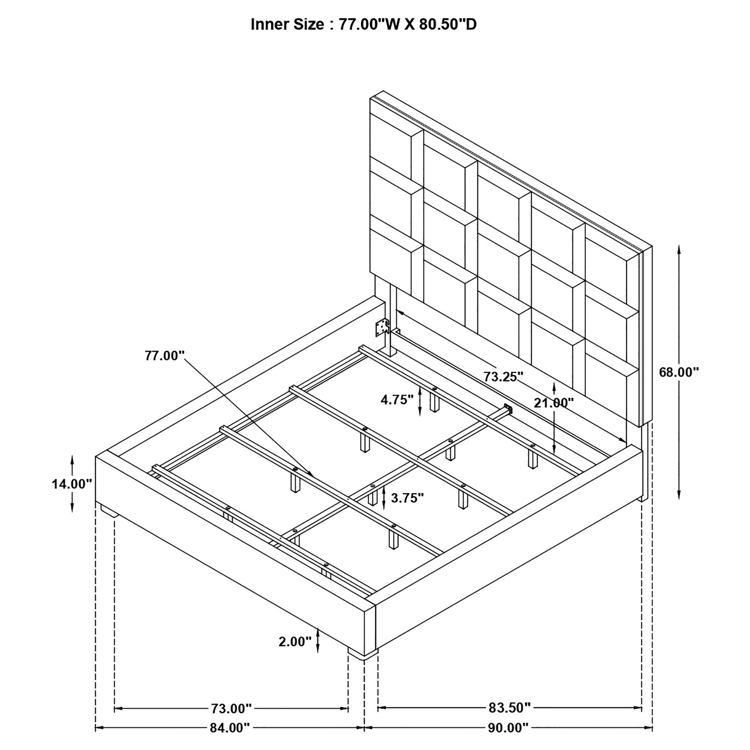 - Dimensions: 68.25" H x 83.75" W x 90.25" L (eastern king).